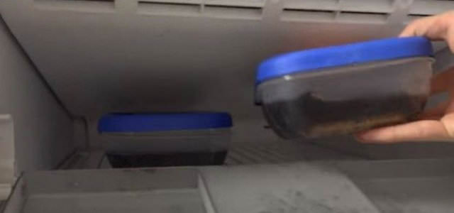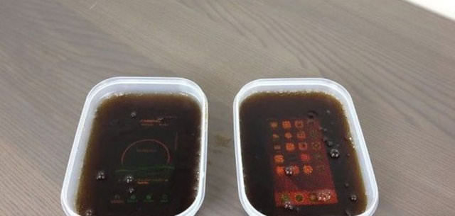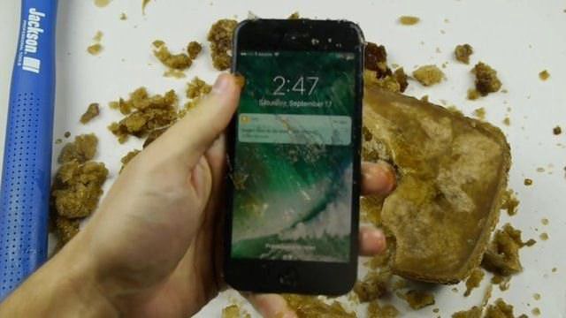 Boş bir kabın içine önce iPhone 7'yi koydu, sonra o kabı kolayla doldurup, 12 saat boyunca buzlukta bekletti.