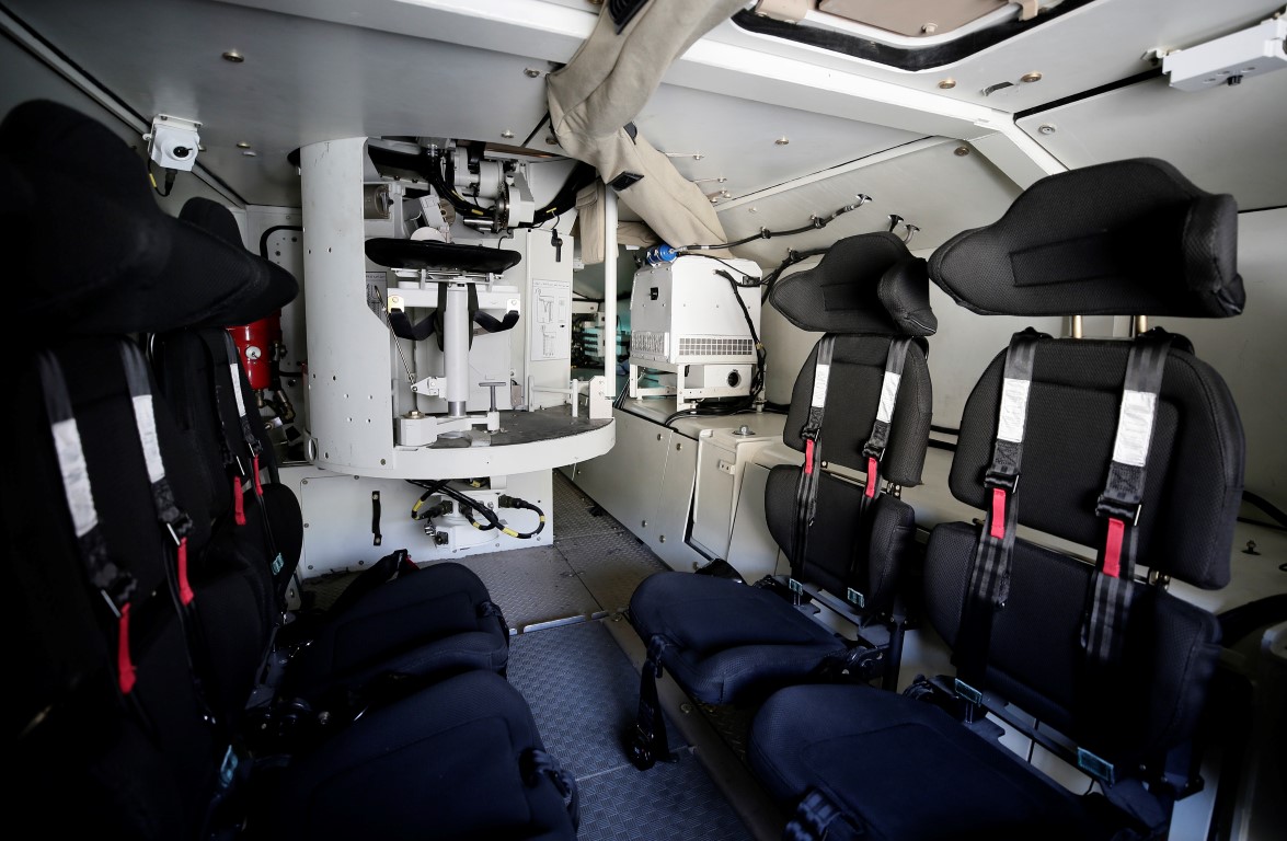 Aracın ön kısmında bulunan iki kişilik sürücü kabini ve 180 derece yatay görüş açısı, yüksek sürüş güvenliği ve konforu sağlıyor. Geniş cam periskopları ile aracın ön ve arkasında konumlanmış gece ve gündüz kameraları, sürücü ve komutana, daha geniş görüş alanı sağlıyor.