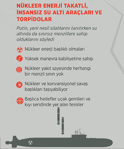 Açıklamada, yeni stratejik silah sistemlerinin oluşturulmasının Rusya'nın savunma kapasitesinin arttırılması, Rusya ve müttefiklerine yönelik herhangi bir saldırıyı önleme amaçlı olduğu vurgulandı.
