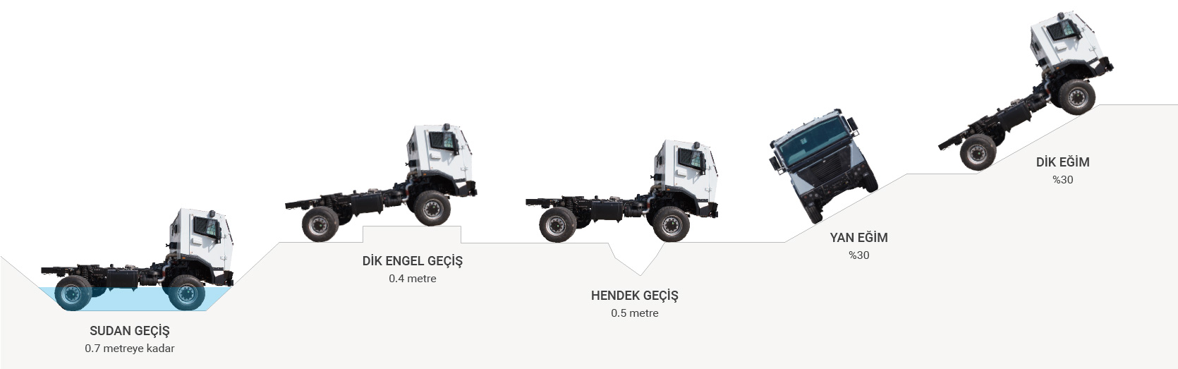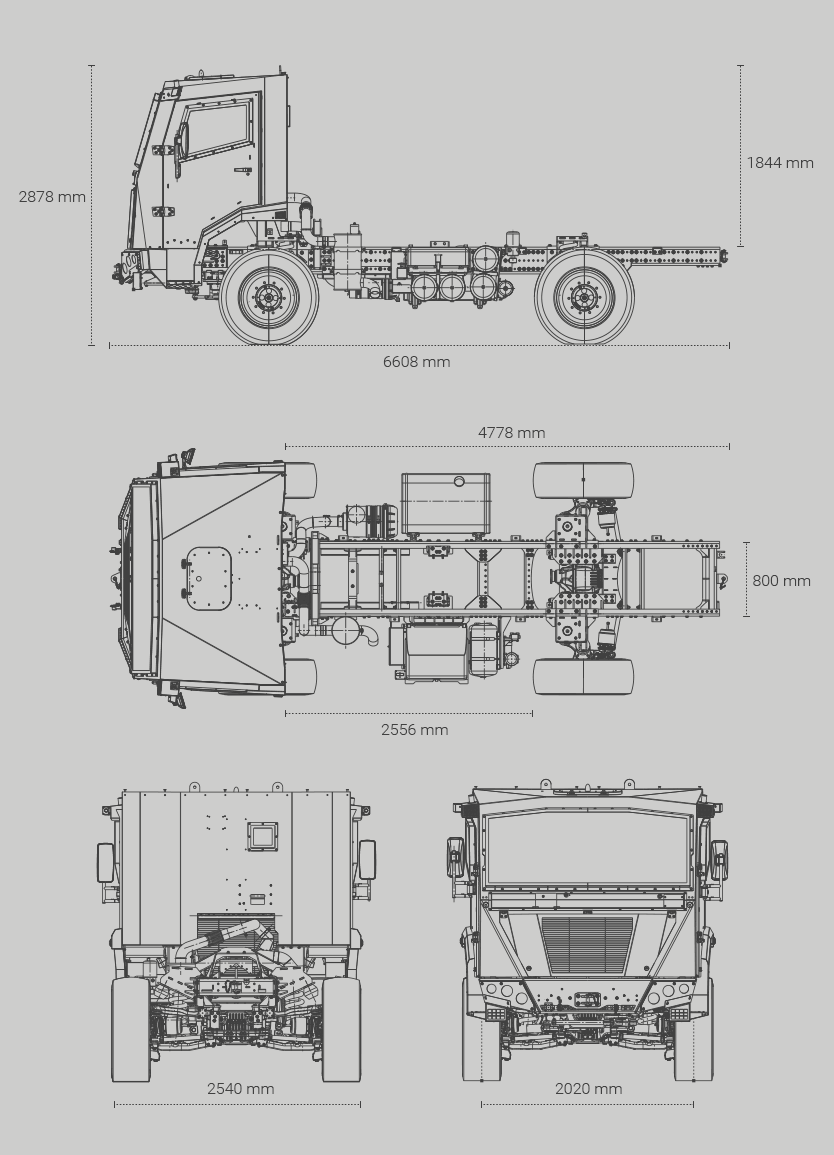 Sürekli veya kilitlenebilir 4x4, 6x4 veya 6x6 tahrik