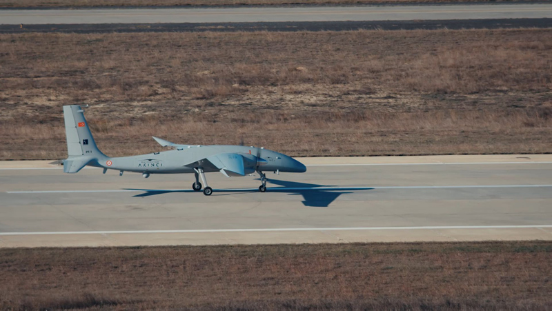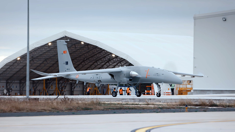 24 saat havada kalabilen ve 40 bin feet servis tavanına sahip olan Bayraktar AKINCI, 400 kilogram dahili ve 950 kilogram harici olmak üzere toplam bin 350 kilogram faydalı yük taşıma kapasitesiyle ön plana çıkıyor.
