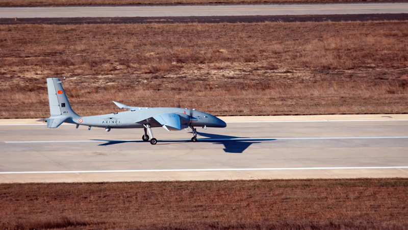 5 bin 500 kilogram kalkış ağırlığı bulunan Bayraktar AKINCI TİHA, 2 adet 450 HP gücünde turboprop motor ile gökyüzüne yükseliyor.