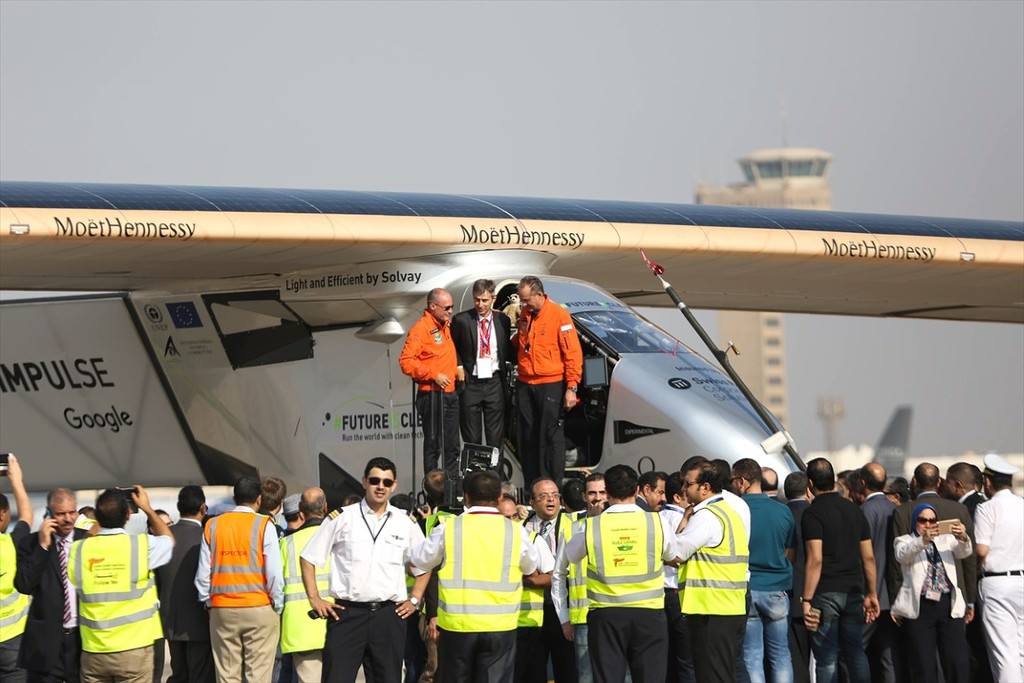 Akdeniz üzerinde gerçekleştirilen iki günlük uçuşta, Girit açıklarına kadar gelen test pilotu ve projenin CEO'su Andre Borschberg yönetimindeki dört elektrik motora sahip uçak, buradan Mısır'a devam etti.