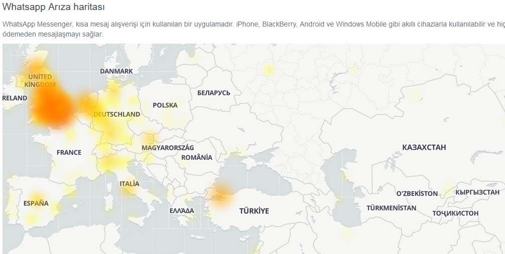 WhatsApp uygulamasına da aynı Facebook ve Instagram'da olduğu gibi kısıtlı erişim sağlanıyor. WhatsApp sorunu saat 12.11 civarında başladı. WhatsApp sorunun da neden kaynaklandığı konusunda herhangi bir bilgi bulunmuyor.
