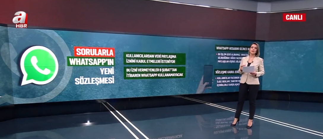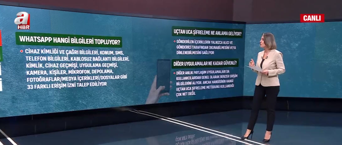 Son dakika haberi... WhatsApp hakkında merak edilen sorular neler? WhatsApp hesabını silince ne olur? Sözleşme kabul edilirse ne olur? WhatsApp hangi bilgileri topluyor? Uçtan uca şifreleme ne anlama geliyor? Diğer uygulamalar ne kadar güvenli? Kişiler veriler tehlikede mi? Kişisel veriler nasıl korunabilir? Kişiler veriler tehlikede mi? "Gölge profil" nedir? Siber güvenlik uzmanı Vahit Aslankol A Haber canlı yayınında yanıtladı.