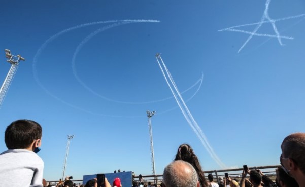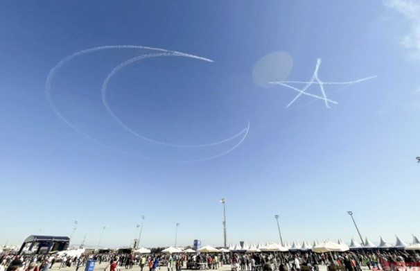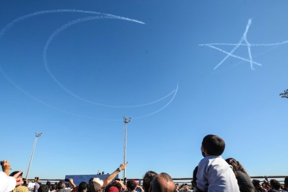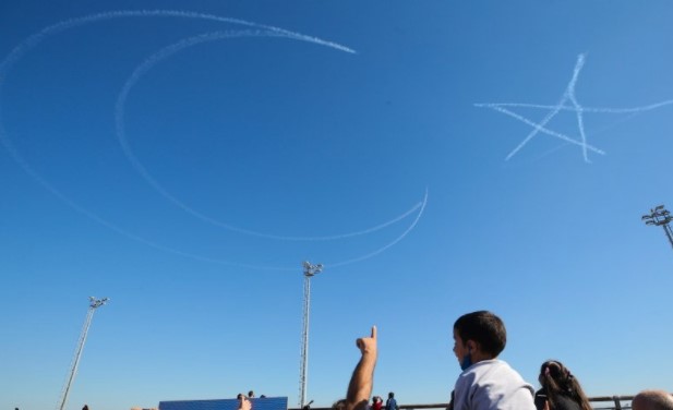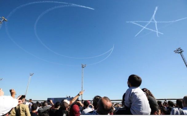 Büyüleyici bir performansa imza atarak büyük gurur yaşatan Türk Yıldızları, gökyüzünde ay yıldız çizdiler.