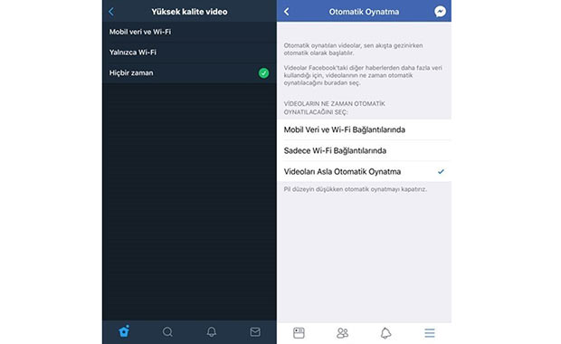 Facebook için: Ayarlar > Videolar ve Fotoğraflar