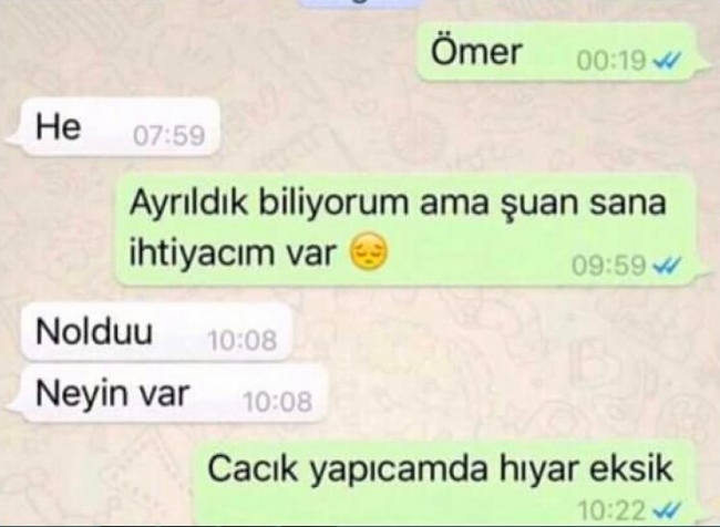 WhatsApp'ta oluşan komik dialoglar sosyal medyaya yansımaya devam ediyor. Milyarlarca kullanıcısı olan WhatsApp'ın komik mesajları okuyanları kahkahaya boğmaya devam ediyor. WhatsApp her gün yeni bir komik diyaloğa sahne oluyor.