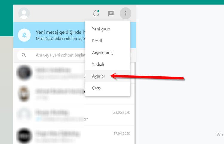 Önce WhatsApp Web'e girmek için telefonunuzdan WhatsApp Web ayarına girin.