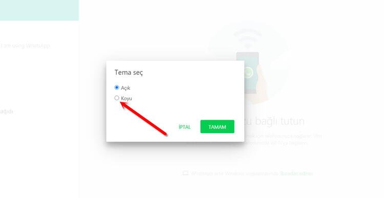 Koyu seçeneğini seçtikten sonra WhatsApp kararacak ve telefonda olduğu gibi WhatsApp Web de siyah bir görünüme kavuşacak.