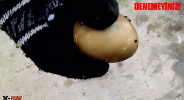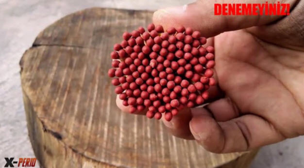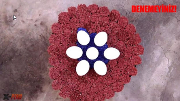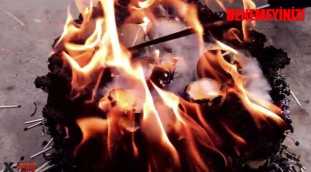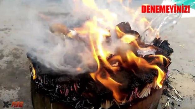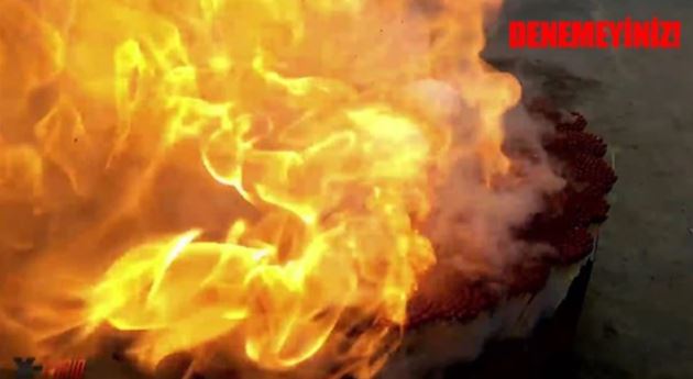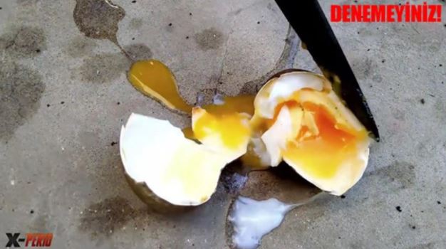 Son zamanlarda ilginç deneylere imza atan çılgın gençler, yere dizdikleri tahta kibrit çöplerinin üzerine, yumurta koyarak ısı tabancasıyla ateşe verdiler. Yumurtanın ateşle geçirdiği reaksiyon yavaşlatılmış kamera çekimi ile gözler önüne serildi.