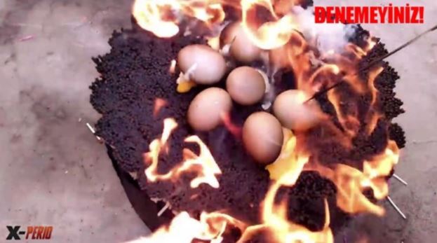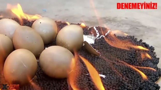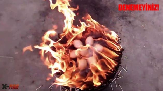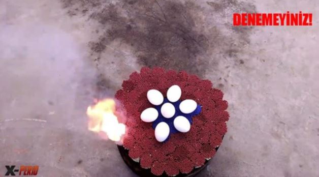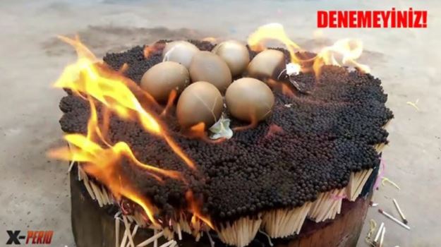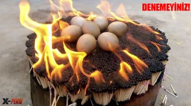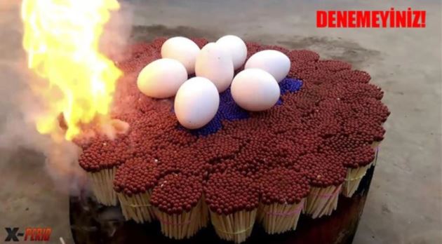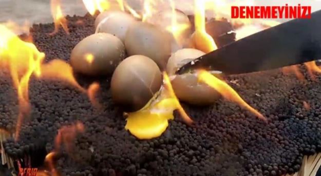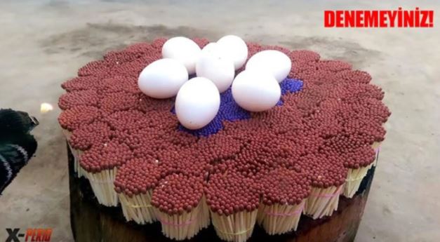 Yüzlerce kibritin üzerinde yumurta pişirdiler! İlginç deneyi böyle görüntülediler