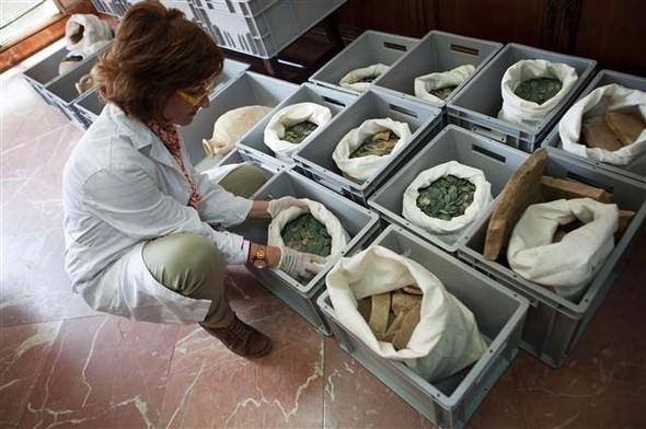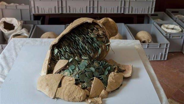 İspanya'nın güneyindeki Sevilla kentinde su borularının rutin kontrolünü gerçekleştiren işçiler Roma dönemine ait 600 kilogram sikke buldu.