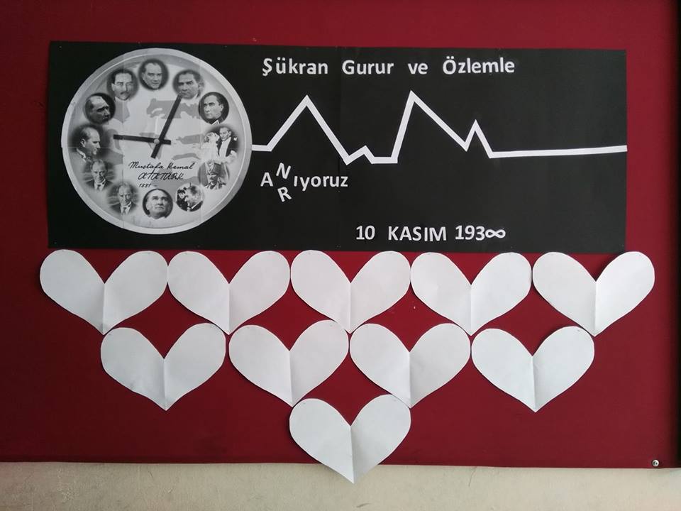 10 Kasım panosu nasıl yapılır? Hayatını milletinin ve vatanının bağımsızlığına adayan, kurucusu olduğu Türkiye Cumhuriyeti'nin ilk Cumhurbaşkanlığını yapan Gazi Mustafa Kemal Atatürk, 82 yıl önce 10 Kasım 1938'de, saat dokuzu beş geçe milletine veda etti. Atatürk, vefatının 82'nci yıl dönümünde saygıyla anılacak. 10 Kasım'a özel pano çalışması örneklerine sayfamızdan ulaşabilirsiniz. İşte 10 Kasım Atatürk'ü Anma Günü'ne özel pano çalışması örnekleri..