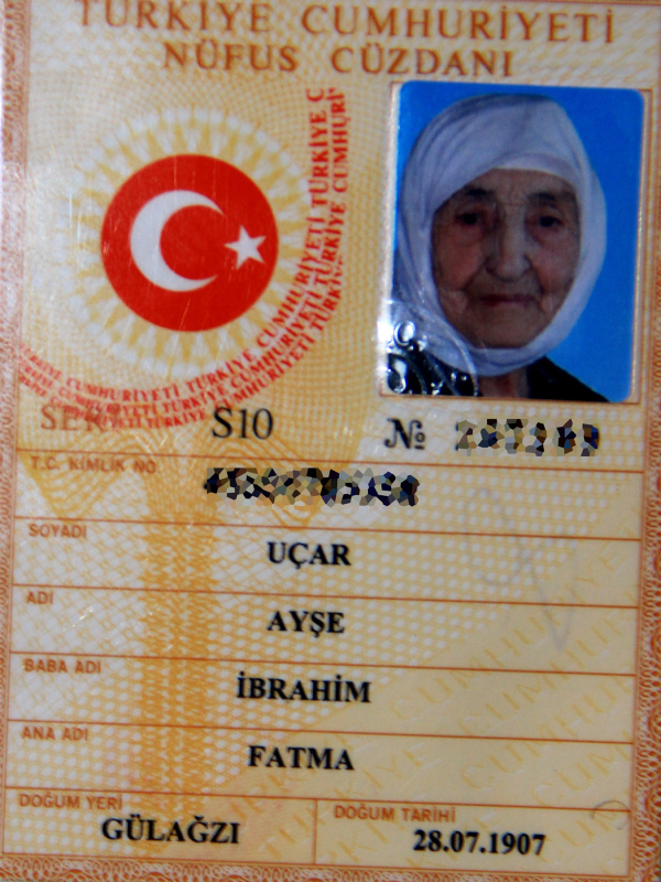 Muğla'nın Menteşe ilçesi kırsal Gülağzı Mahallesi'nde yaşayan Ayşe Uçar'ın nüfus cüzdanındaki doğum tarihi 28 Temmuz 1907. .