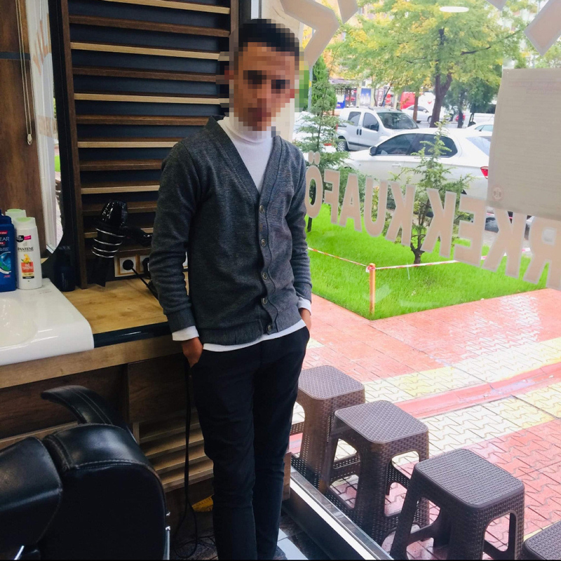 "O gün de ilk defa saç tıraşı yapıyordum. Müşteri gelince bana 'tıraş et' dedi. Ben 'daha bilmiyorum yanlış yaparım' dedim. O da 'olacak, yapacaksın' dedi. Sakal tıraşını yanlış yaptım. Sonra 'saç tıraşına geç' dedi. Sakal tıraşını yaparken enseme ve yanağıma sürekli vuruyordu. Bu sırada ben ağlıyordum. Bana, 'ağlama saç tıraşına geç' dedi. Saç tıraşını da yanlış yapınca copla vurdu. O an çok acı duydum ve bağırdım, ağladım. Bacağımın sağ iç ve sol dış kısımlarına vurdu. Ben koltuğa oturdum, o tıraşı düzeltirken tarağı kırıp bana fırlattı, 'buradan herkesi çıkartırım seni komalık edene kadar döverim' dedi. Cep telefonumu almıştı, sonra telefonumu verdi beni eve gönderdi. Bana yaptıklarının karşılığı neyse o cezayı almasını istiyorum."
