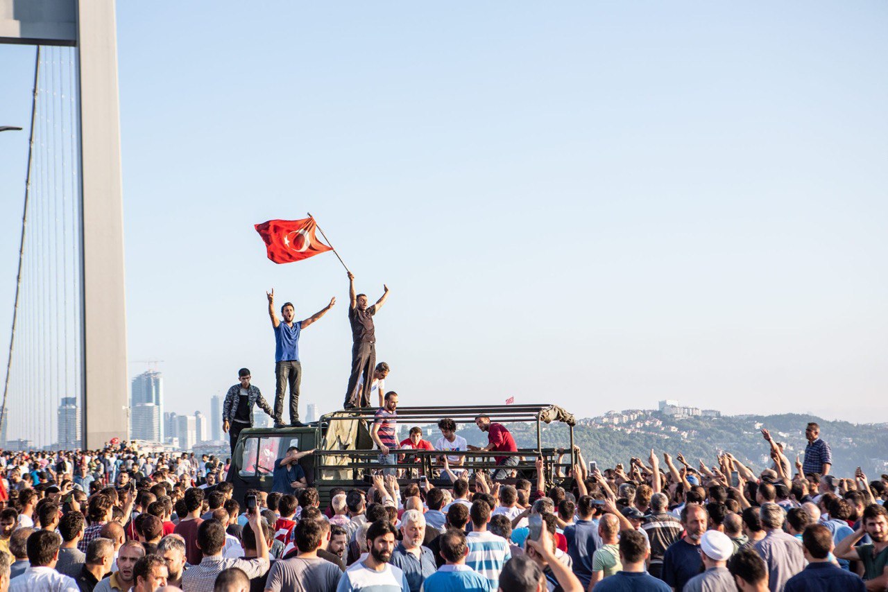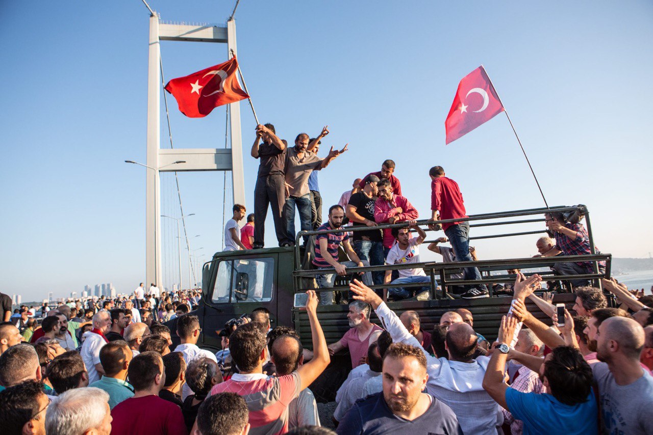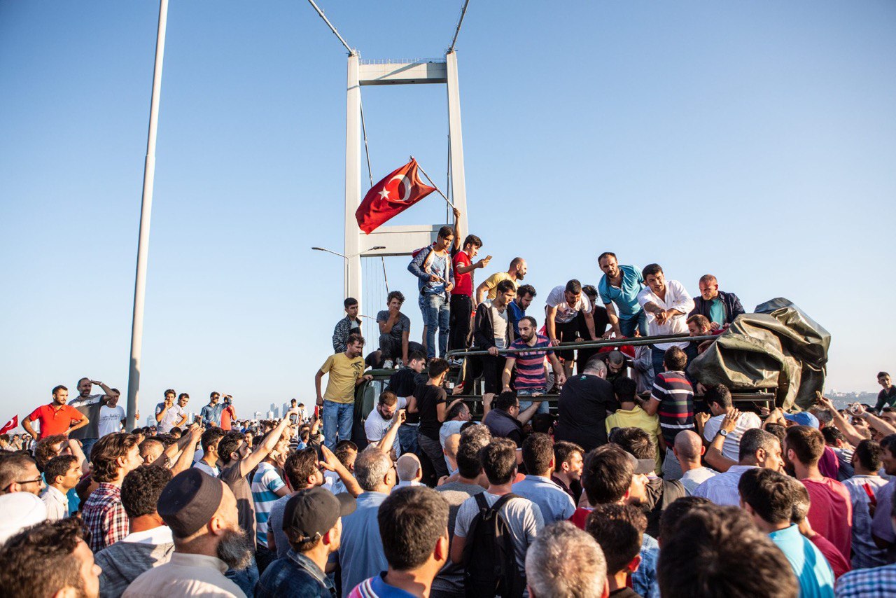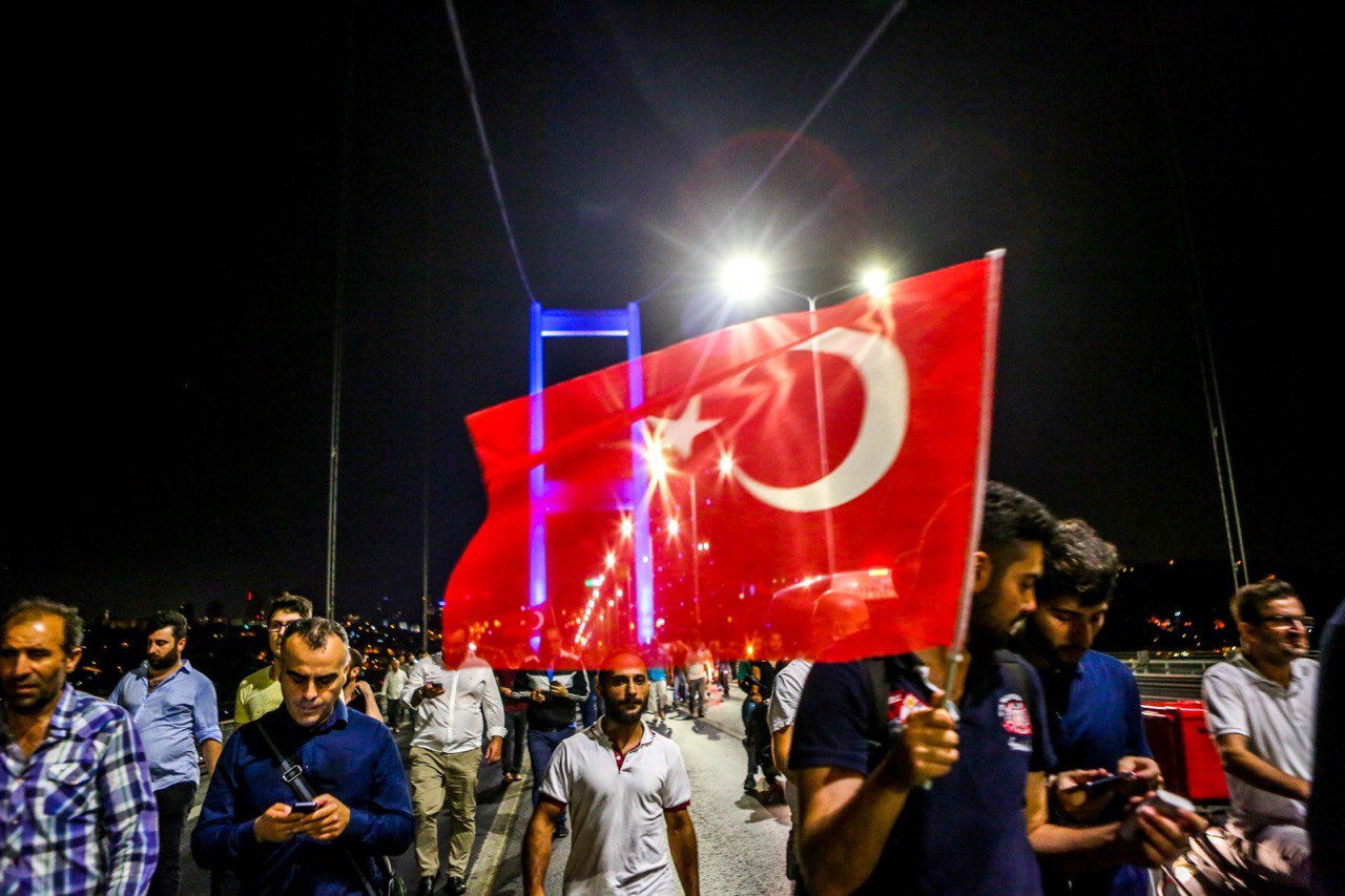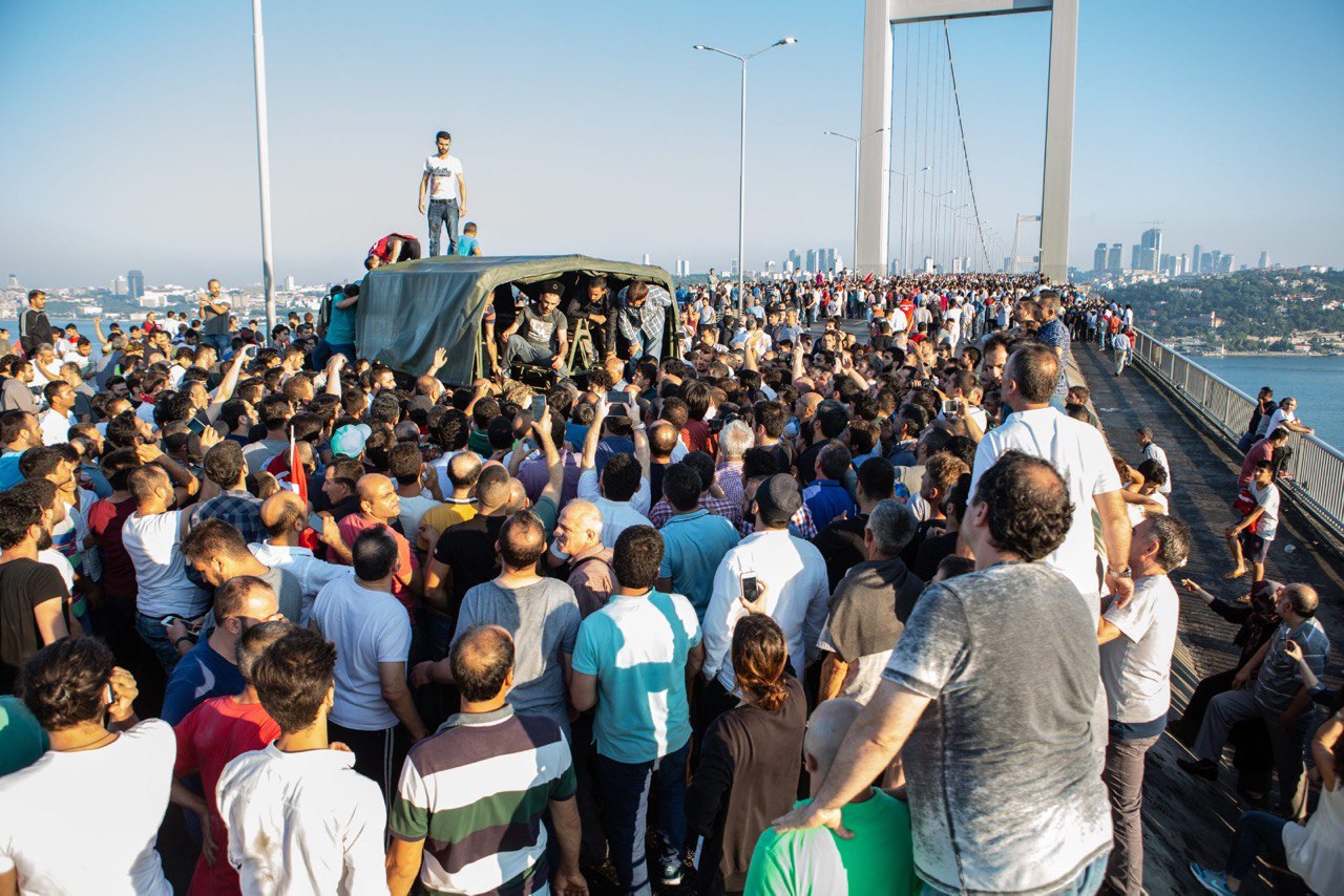 Fetullahçı Terör Örgütü'nün darbe girişimi sırasında 15 Temmuz Şehitler Köprüsü'nde 2'si polis 34 kişi şehit edildi. Köprüyü kapatan darbeci askerler 8 saat 23 dakika boyunca köprü üzerinde ölüm saçtı. 15 Temmuz'u 16 Temmuz'a bağlayan o kanlı gecede vatandaşlarla birlikte köprüdeydim, yanımdaki birçok kişi vuruldu, şehit edildi. Hayatımın en zor günlerinden biriydi. Gece bittiğinde akıllı telefonum köprünün üzerinde 34 kilometre yol yürüdüğüm uyarısında bulunuyordu. 15 Temmuz 21:52'de başlayan olaylar 16 Temmuz 06:15'te darbeci askerlerin teslim olmasıyla son bulmuştu. Öfke ve zafer çığlıkları arasında vatandaşlar tankların üzerinde Türk bayrakları sallayarak darbe girişimine dur demenin sevincini yaşıyordu.