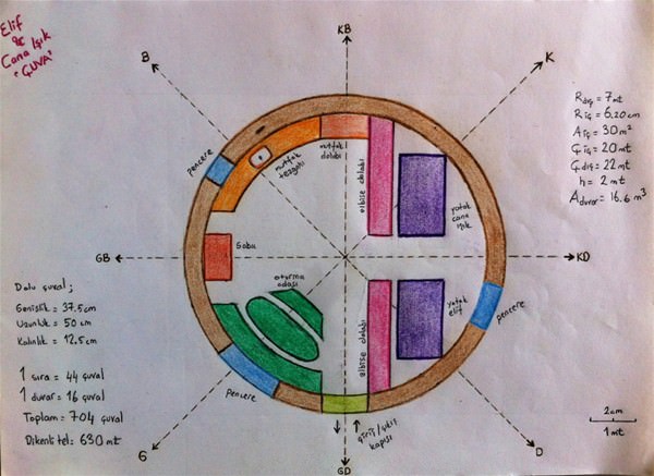 Her şey bu proje ile başladı ve hayalindeki evi kağıda döktükten sonra da sıra gerçekleştirmeye geldi.
