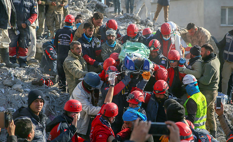 "Asrın felaketi" olarak nitelenen ve Kahramanmaraş merkezli 7,7 ve 7,6 büyüklüğündeki depremlerden etkilenen Nurdağı ilçesinde yıkılan binaların enkazlarındaki arama kurtarma çalışmaları sürüyor.