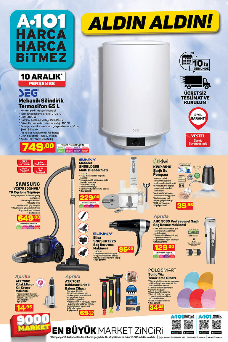 17 Aralık A101 aktüel ürünler kataloğu yayında. A101 17 Aralık aktüel ürünler kataloğunda aldın aldın kampanyası sürüyor. İndirimli ürünleri yakından takip edenler için ahaber.com.tr olarak detayları bir araya getirdik. Oyunseverlerin yakından takip ettiği teknoloji ürünlerinin yanı sıra ev hanımlarını yakından ilgilendiren gıda ve mutfak gereçlerinin yanı sıra her evin ihtiyacı olan mutfak araç gereçleri mağazalarda satışa sunuluyor. İşte, 17 Aralık A101 aktüel ürünler kataloğu...