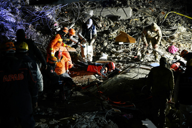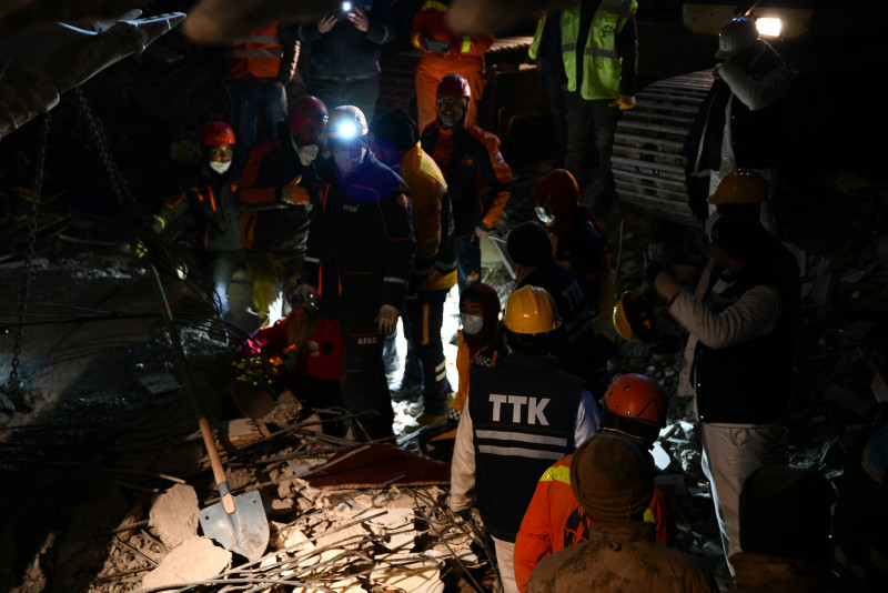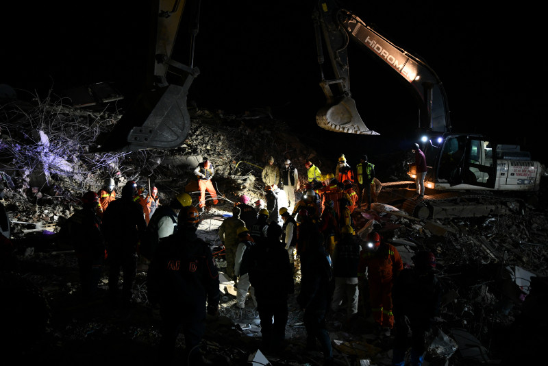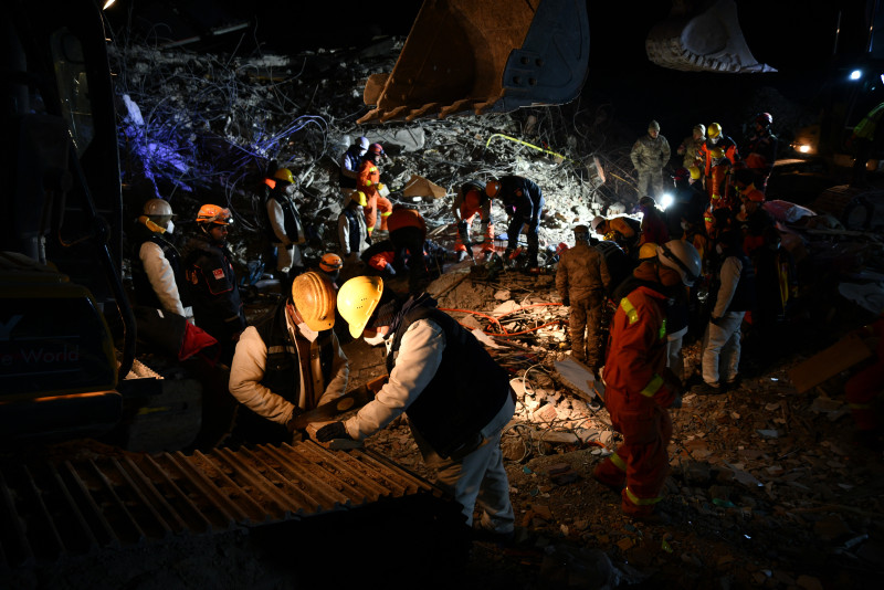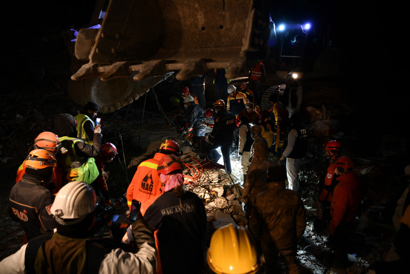 "Asrın felaketi" olarak nitelenen Kahramanmaraş merkezli depremlerden etkilenen Gaziantep'in İslahiye ilçesinde yıkılan binaların enkazlarındaki arama kurtarma çalışmaları sürüyor.