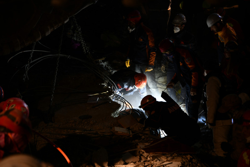 AFAD, Mahalle Afet Gönüllüleri, Güngören Belediyesi ve Türkiye Taşkömürü Kurumuna bağlı arama kurtarma ekipleri, yıkılan 5 katlı Zamanlar Apartmanı'nın zemin katına ulaştı.