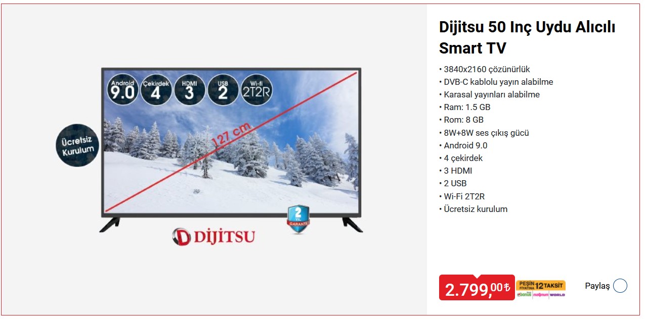 Dijitsu 50 Inç Uydu Alıcılı Smart TV