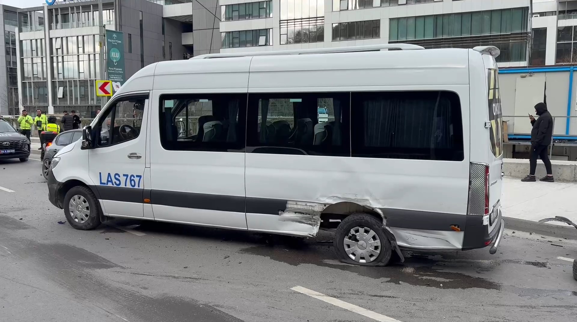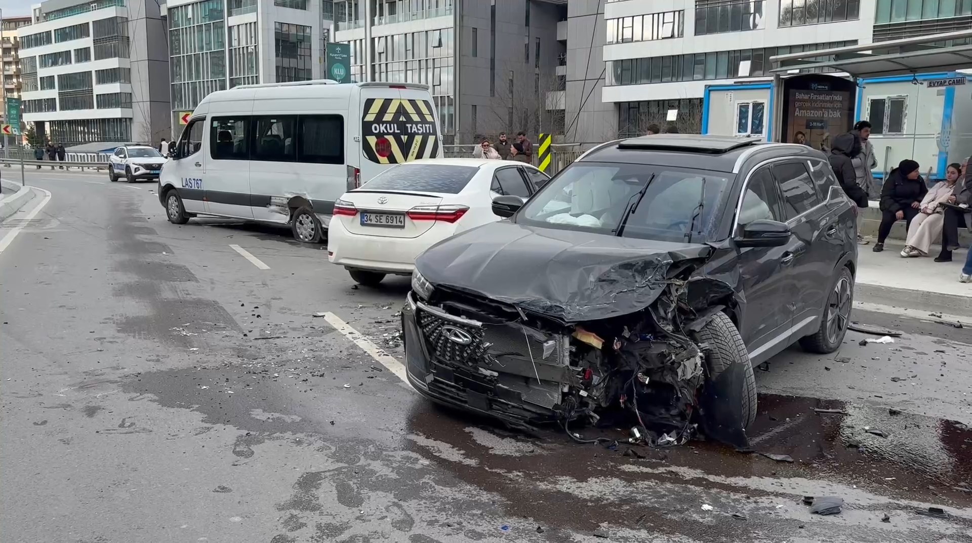Kazada hasar oluşan servis minibüsünde yolcu olmadığı öğrenilirken, kazaya karışan 2 otomobilde bulunan Eren Fidan, Zehra Naz Polat, Melek Yelbay ve Esma Teper'in hafif şekilde yaralandığı öğrenildi. Polis ekibi caddede trafik güvenliği sağlarken sağlık ekipleri yaralılara müdahale etti.
