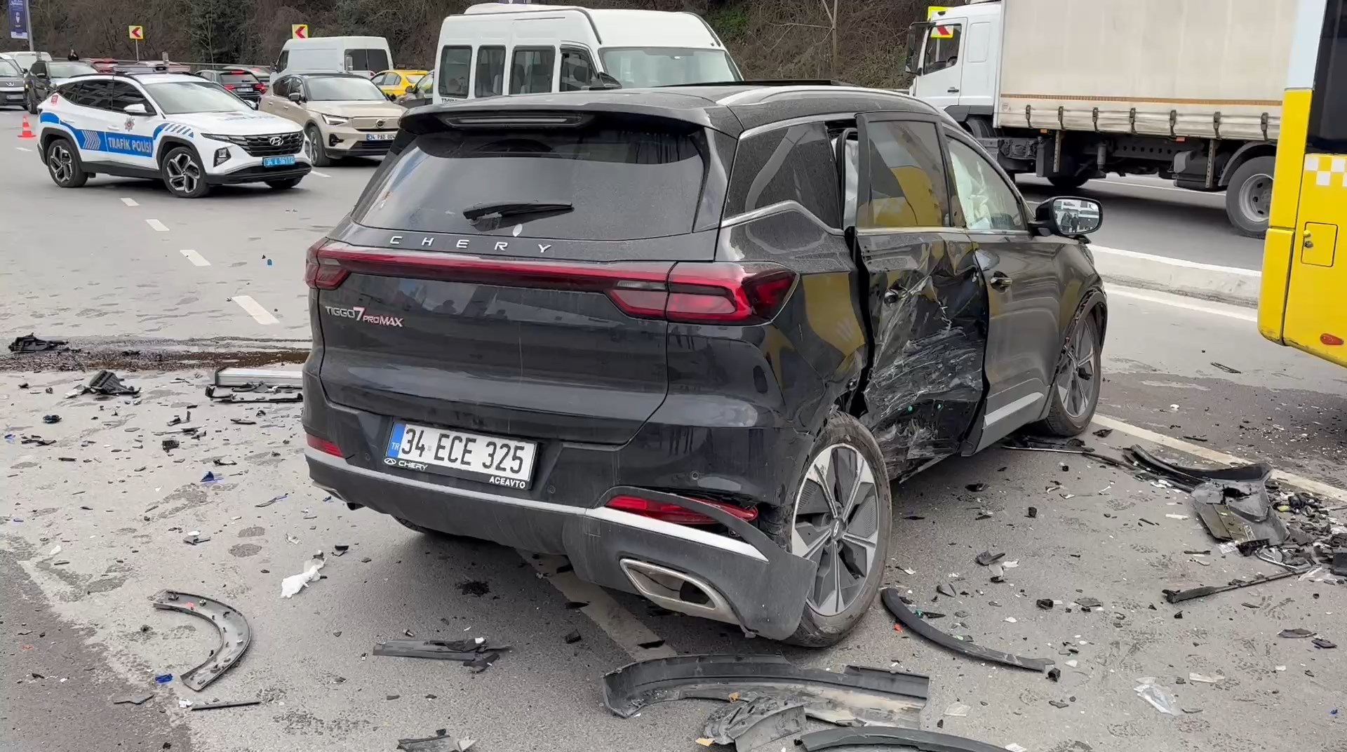 Kazanın etkisiyle savrulan araç, Demirkan Demir'in kullandığı 34 SE 6915 plakalı otomobile çarptıktan sonra İbrahim Gözegü'nün yönetimindeki 34 LAS 767 plakalı servis minibüsüne vurdu. 4 aracın karıştığı zincirleme kazayı görenlerin ihbarı üzerine olay yerine polis ve sağlık ekibi sevk edildi.