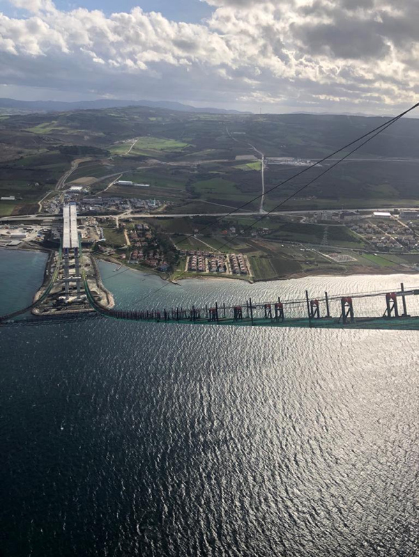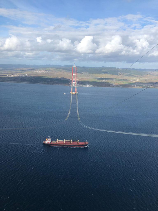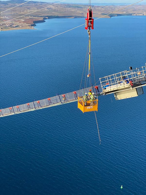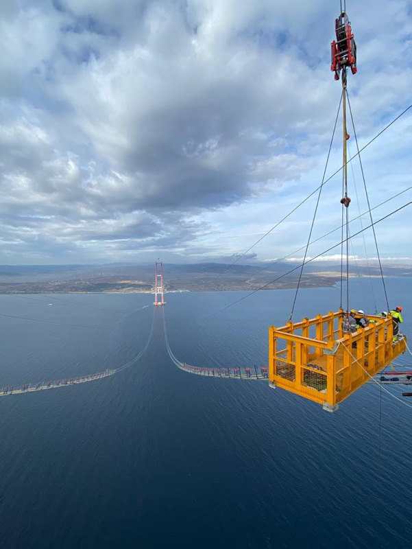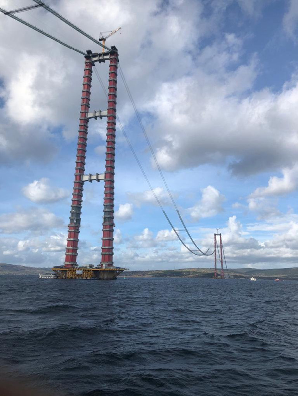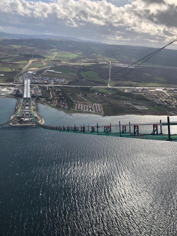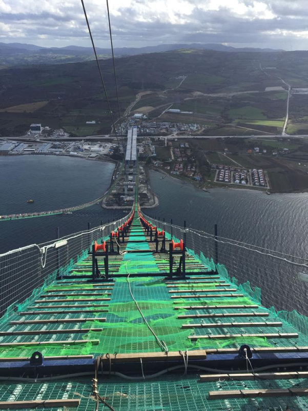 Temeli Cumhurbaşkanı Recep Tayyip Erdoğan tarafından 18 Mart 2017 tarihinde atılan ve tamamlandığında, Çanakkale Boğazı'nda Avrupa ile Asya kıtalarını ilk kez birbirine bağlayacak olan 1915 Çanakkale Köprüsü'nde, ana halatların montajı sırasında kullanılacak kedi yolu neredeyse tamamlandı.
