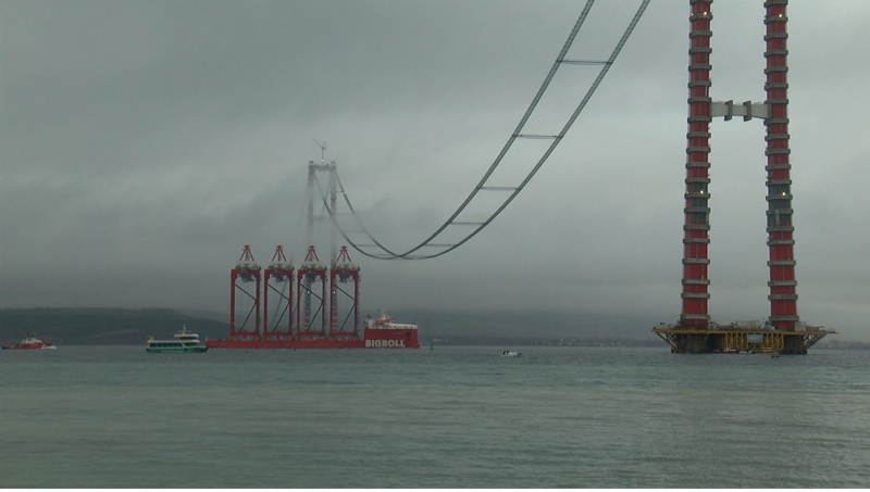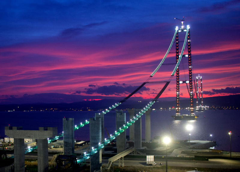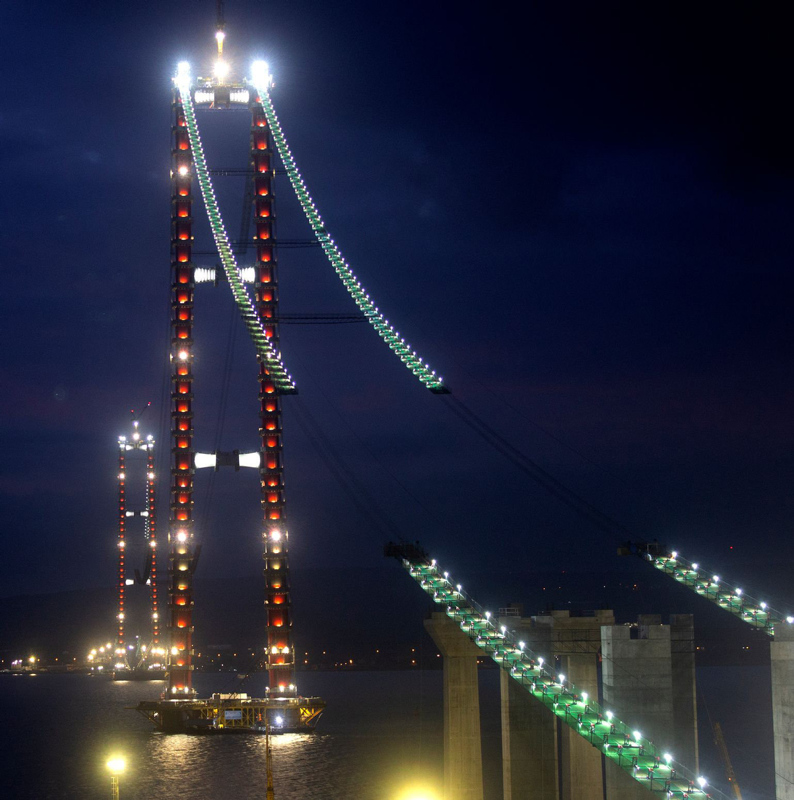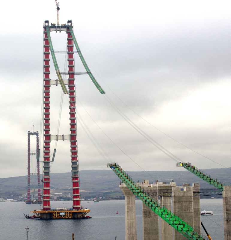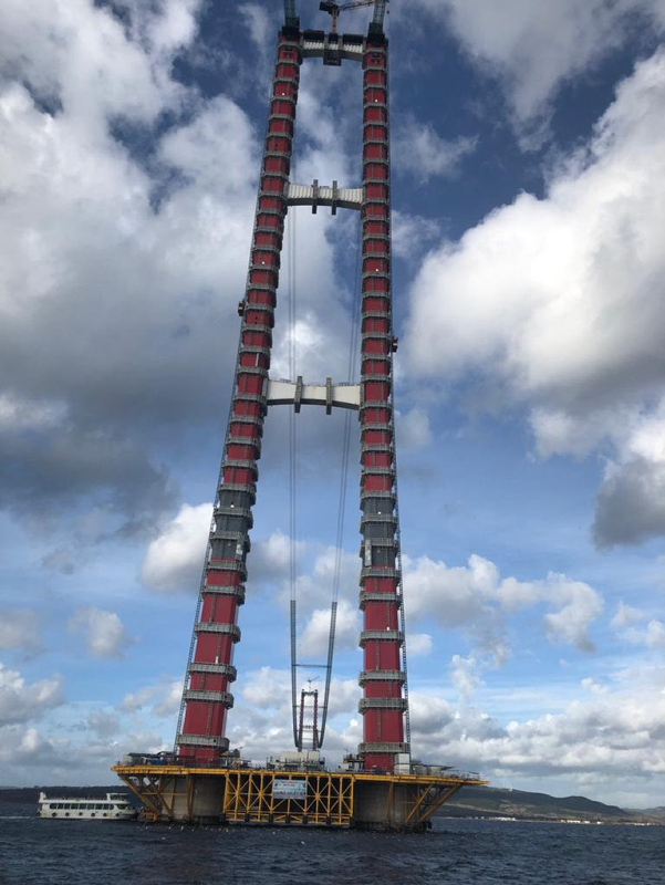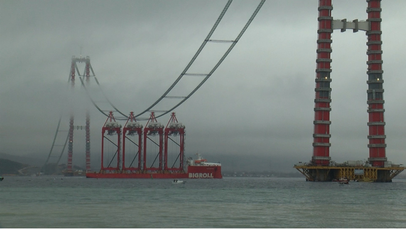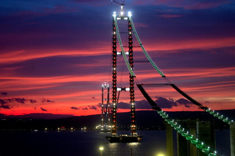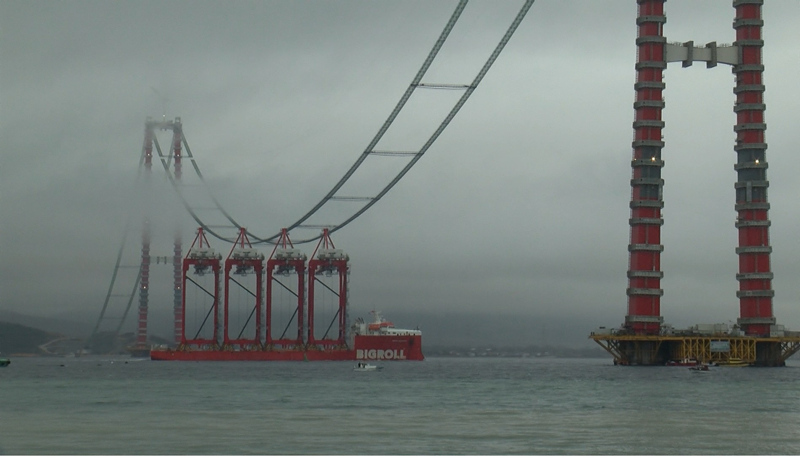 Temeli Cumhurbaşkanı Recep Tayyip Erdoğan tarafından 18 Mart 2017 tarihinde atılan ve tamamlandığında, Çanakkale Boğazı'nda Avrupa ile Asya kıtalarını ilk kez birbirine bağlayacak olan 1915 Çanakkale Köprüsü'nde, ana halatların montajı sırasında kullanılacak kedi yolu neredeyse tamamlandı.