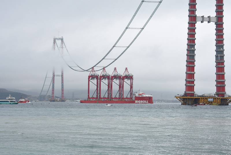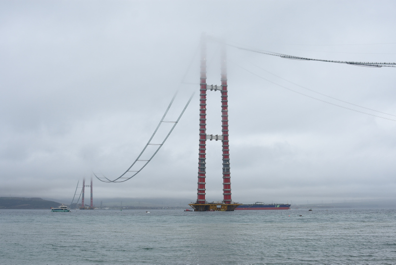 1915 Çanakkale Köprüsü ne zaman bitecek | 1915 Çanakkale Köprüsü güzergahı | 1915 Çanakkale Köprüsü, ana halatlarının çekilmesi sırasında çalışma platformu olarak kullanılacak kedi yolu büyük oranda tamamlandı. Avrupa ve Asya kıtaları, Lapseki'den Gelibolu yakasına kadar uzanan kedi yolu ile birbirine bağlanınca, Çanakkale Köprüsü silüeti de iyice belirdi.