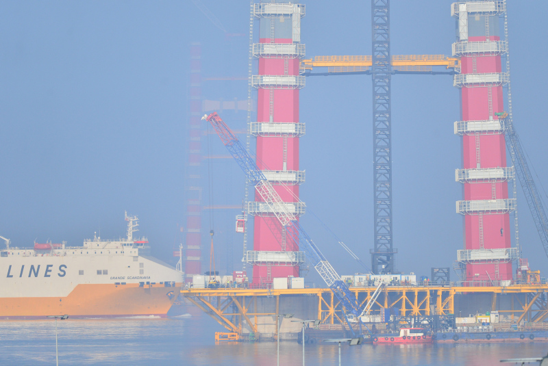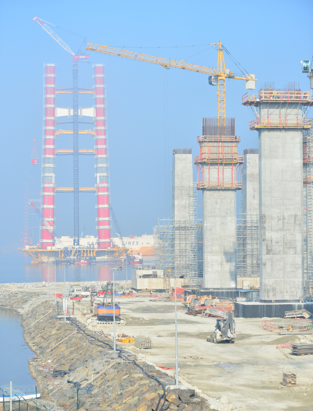 Deniz içindeki blokların yerleştirilmesiyle köprünün ayakları yükselerek Türk bayrağını simgeleyen kırmızı beyaz renkleri açıkça ortaya çıktı. Viyadüklerin yerleştirileceği tabliyelerin imalatı ise devam ediyor. Tabliyelerin sevki itme-sürtme metodu ile gerçekleştirilecek.