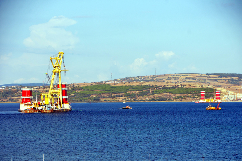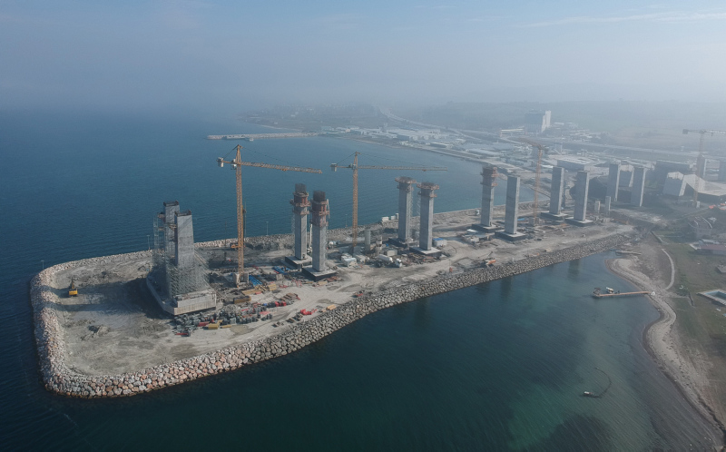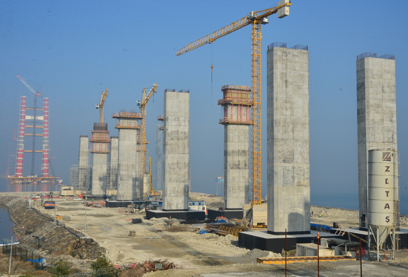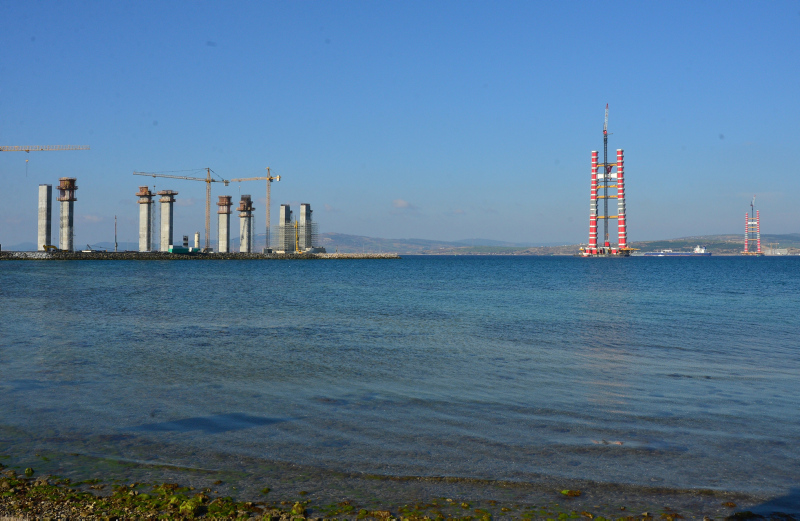 Başkan Recep Tayyip Erdoğan tarafından 18 Mart 2017'de temeli atılan Çanakkale'nin Lapseki ilçesine bağlı Şekerkaya mevkisi ile Gelibolu'nun Sütlüce mevkisi arasında yapımı süren 1915 Çanakkale Köprüsü'nün ayakları her geçen gün yükselmeye devam ediyor.