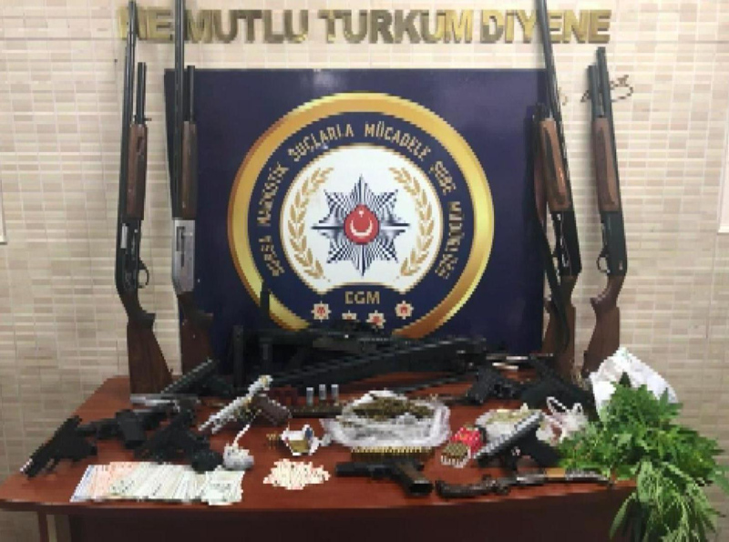 Adreslerde yapılan aramalara destek veren narkotik dedektör köpeği 'Fırtına', uyuşturucu maddeleri bir bir buldu. Operasyonda 12 kilo 600 gram esrar, 360 adet extacy hap, 300 gram toz esrar, 230 gram sentetik kannobinoid, 121 kök hint keneviri, 10 adet ruhsatsız tabanca, 8 adet pompalı tüfek ve 327 adet fişek ele geçirildi.