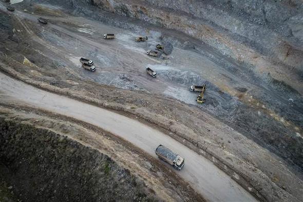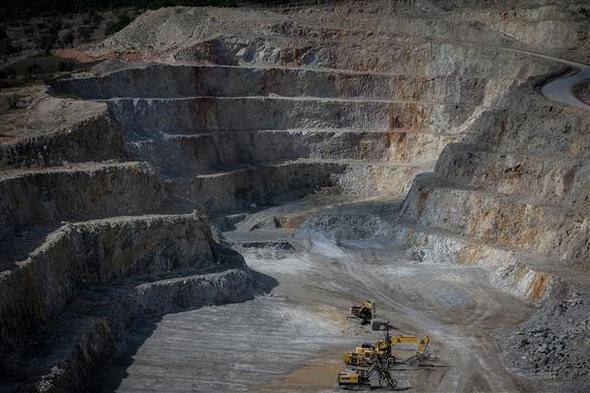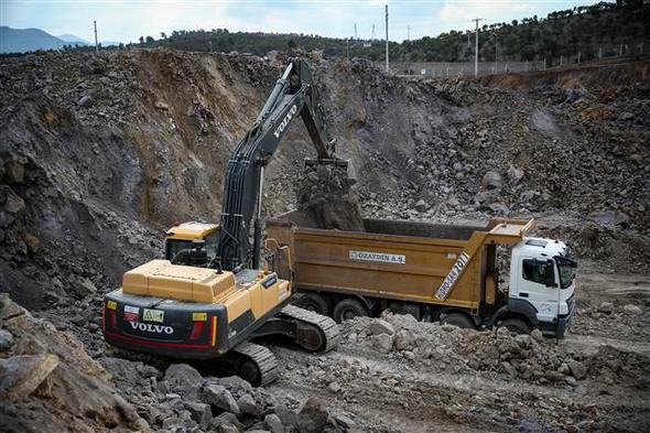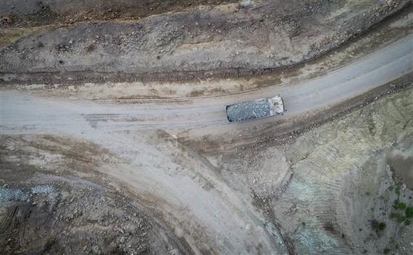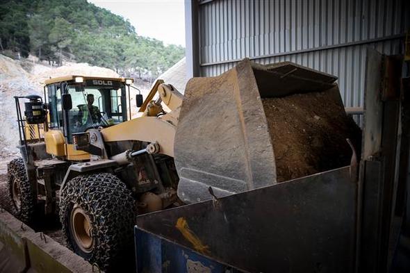 Sondajlar yapılarak cevher tespit edilmesinin ardından delici makineler aracılığıyla yerleştirilen dinamitlerle patlatılan kayalar, kamyonlarla entegre tesise taşınarak, işleme ünitelerine giriyor.