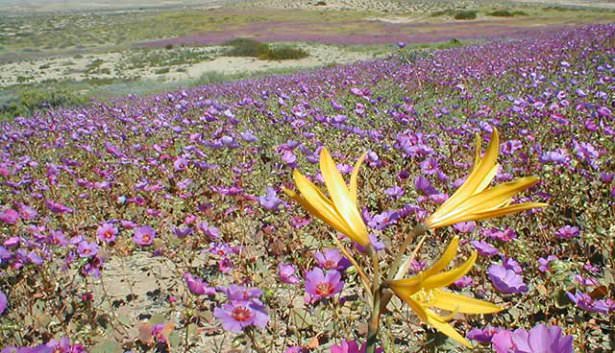 ÇİÇEKLİ ÇÖL-ŞİLİ Yağmurun nadir görüldüğü Şili'deki Atacam Çölü çiçekleriyle meşhur. Ancak bu çiçekler sadece Eylül ve Kasım aylarında görülür.