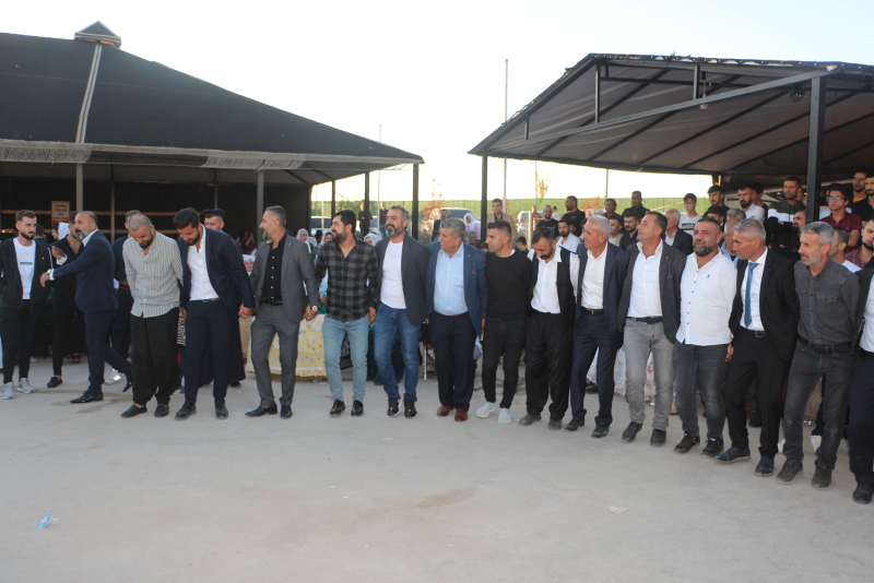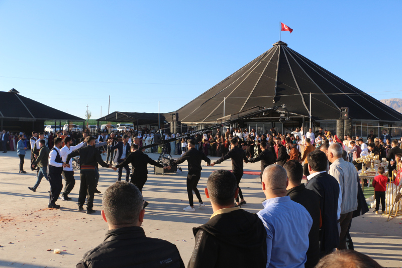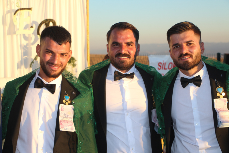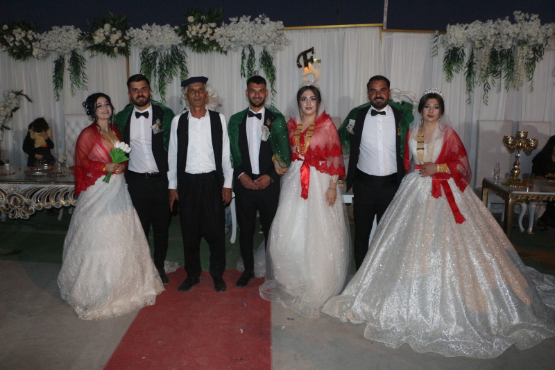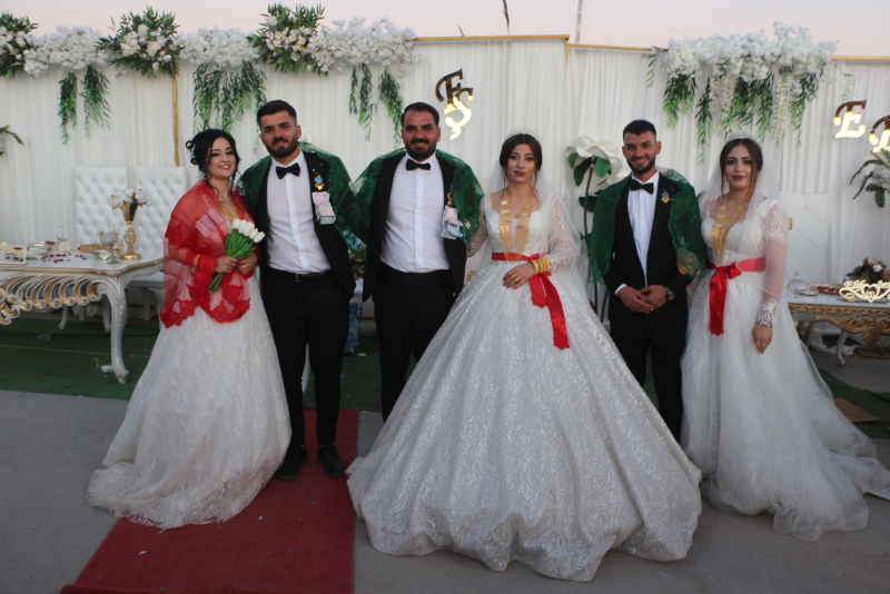 Silopi'de özel bir tesiste yapılan düğünde 30 koyun kesildi, 3 bin kişi ağırlandı. Müzik eşliğinde halay çeken davetliler, Kerem (24)- Asya (20), Şivan (26)- Feride (20) ve Berguvan (25)- Elif (22) çifti ile fotoğraf çektirmek için sıraya girdi.