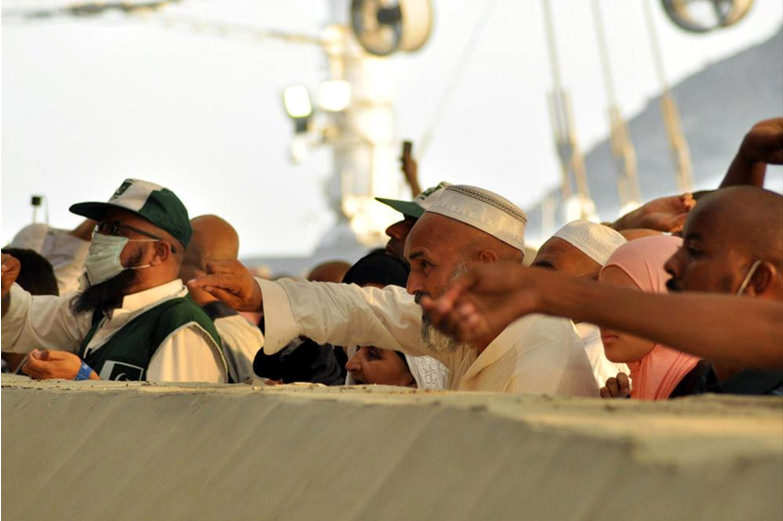 Hac ibadetini yerine getirmeye çalışan Müslümanlar, ellerindeki taşlarla Cemerat'a geldi.