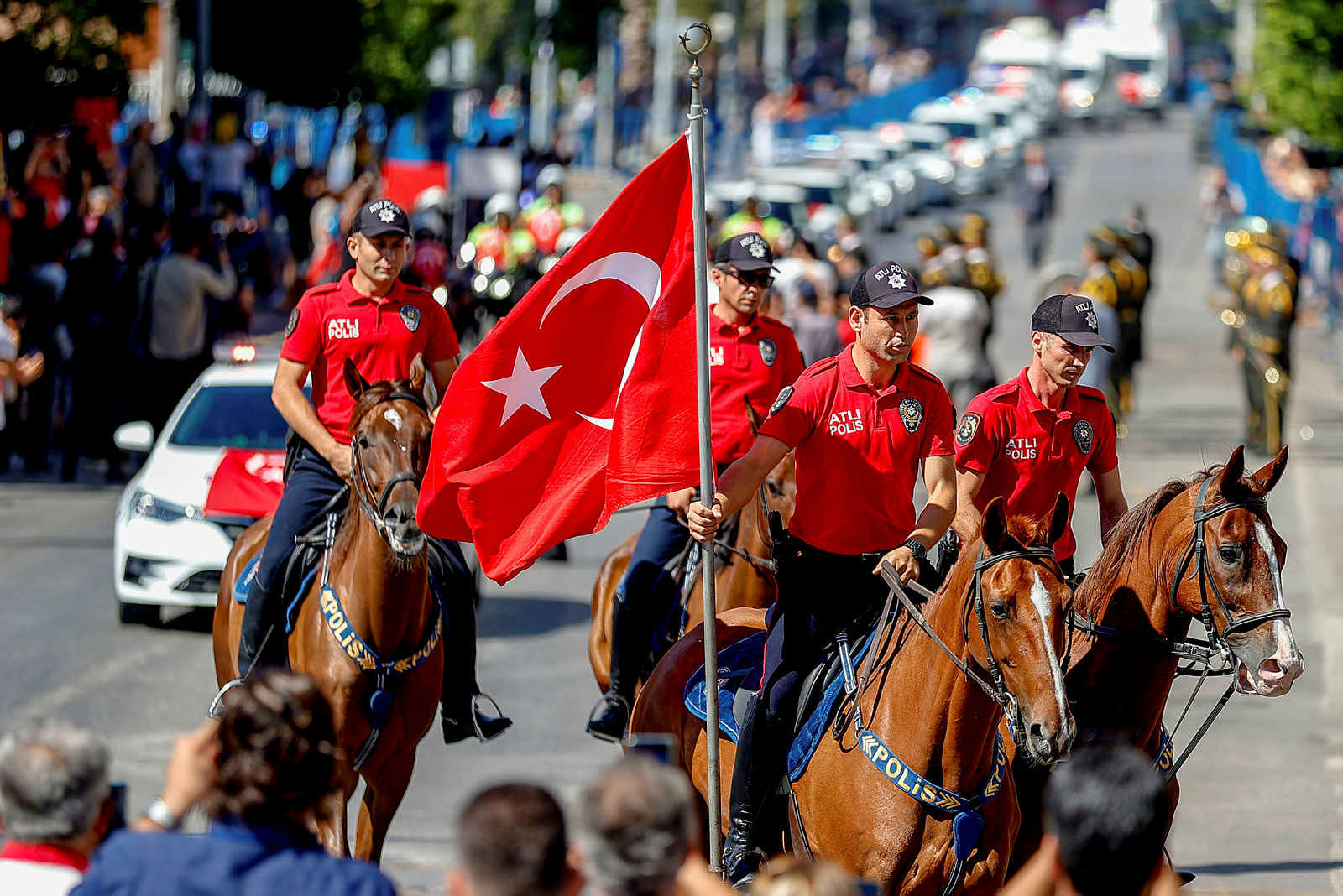 Başkan Recep Tayyip Erdoğan başkanlığındaki kortejde, TBMM Başkanı Mustafa Şentop, Cumhurbaşkanı Yardımcısı Fuat Oktay, CHP Genel Başkanı Kemal Kılıçdaroğlu, Cumhurbaşkanlığı Kabinesi üyeleri, MHP Genel Başkanı Devlet Bahçeli, İYİ Parti Genel Başkanı Meral Akşener, yüksek yargı organlarının başkanları, komutanlar, siyasi partilerin temsilcileri, bürokratlar ve diğer devlet erkanı yer aldı.
