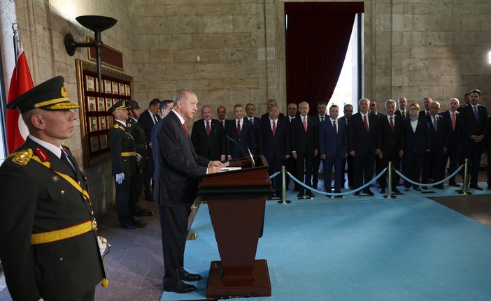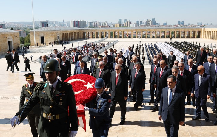 Büyük Zafer'in 100'üncü yılı kutlamaları kapsamında, ilk tören Anıtkabir'de düzenlendi. Tören, devlet erkanının Aslanlı Yol'da yürüyüşüyle başladı.