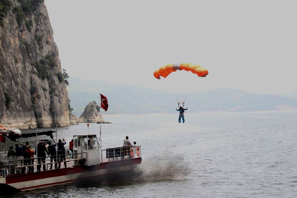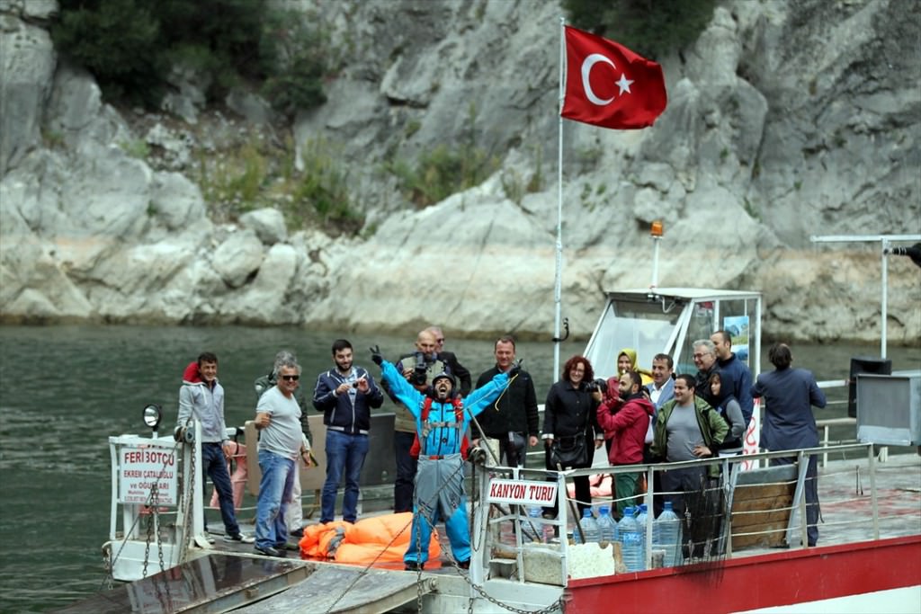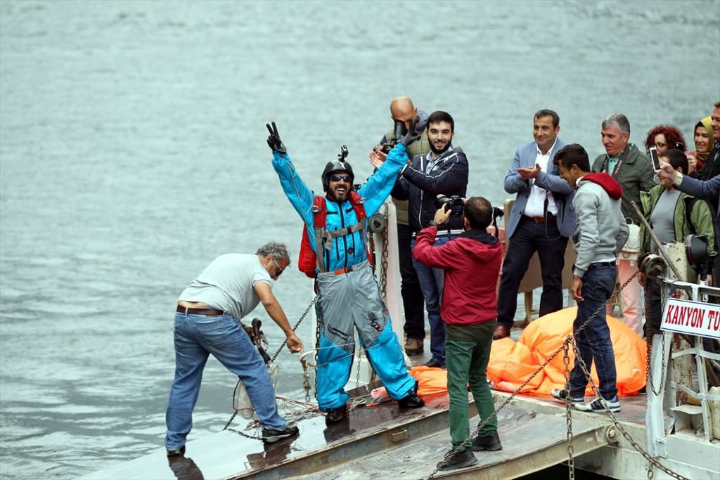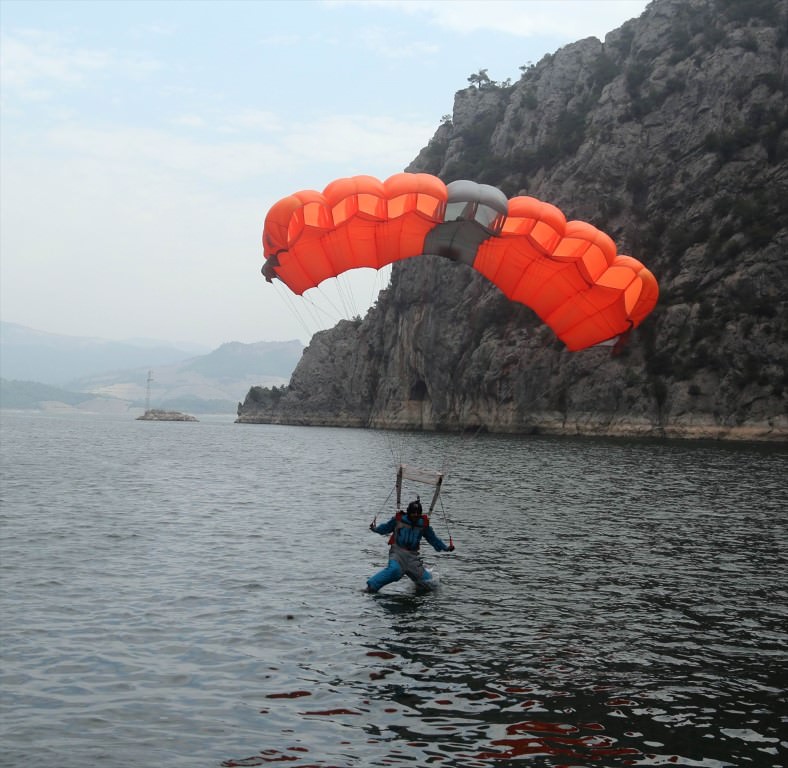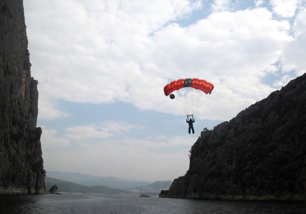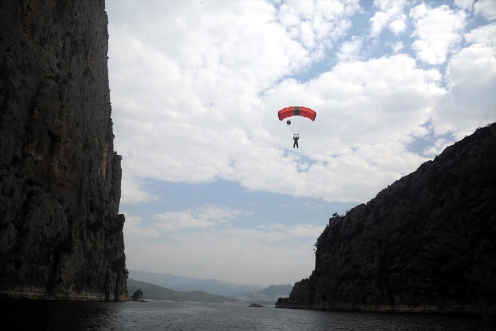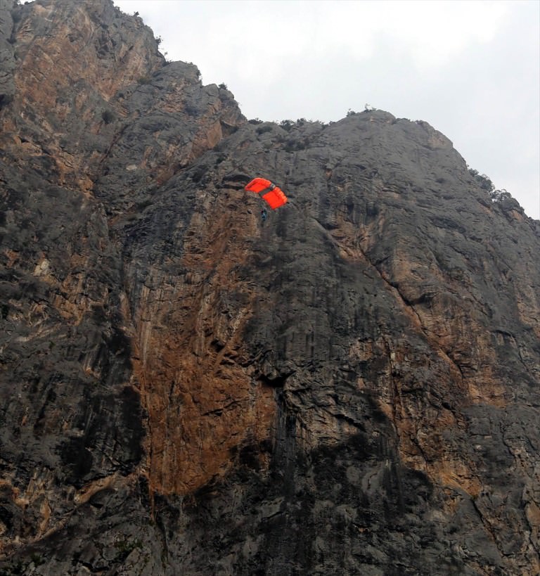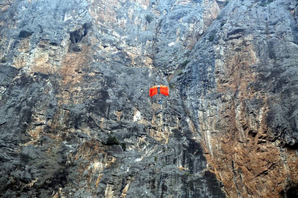 Base jumping (binalar, kuleler, köprüler üzerinden paraşütle atlama) sporcusu Cengiz Koçak, Samsun'un Vezirköprü ilçesindeki Şahin Kanyonu'nda 324 metreden serbest atlayış yaptı.