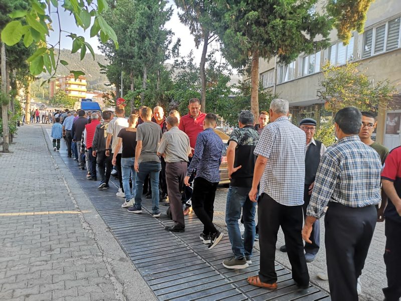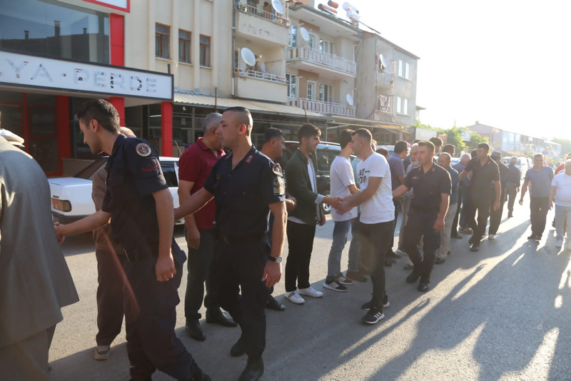 Önce mahallenin büyükleri meydanda yerlerini aldıktan sonra insan zinciri oluşturarak yüzlerce kişi bayramlaşmaya başladı. Yaklaşık yarım saat süren bayramlaşma geleneğinde tüm mahalle halkı bir araya gelerek bayramlaştı.