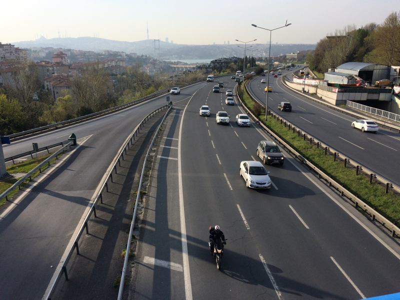 İki günlük sokağa çıkma yasağının ardından İstanbul'da trafik normale döndü. Hafta sonu yüzde 1'lere düşen trafik, pazartesi itibariyle yüzde 13'leri buldu. Öte yandan E-5 ve metrobüs yollarındaki hareketlilik drone ile görüntülendi.