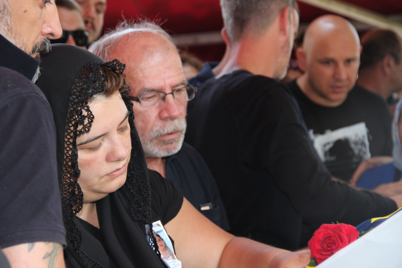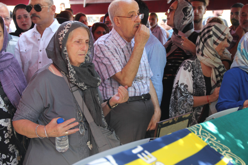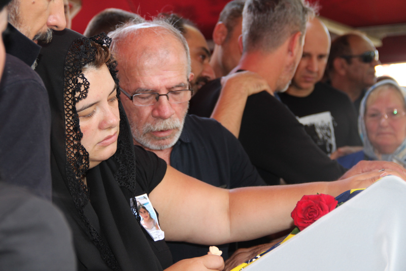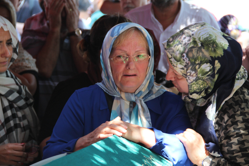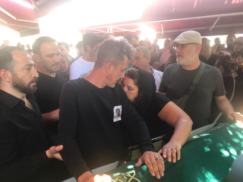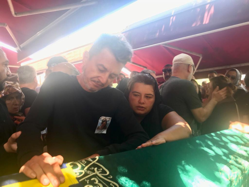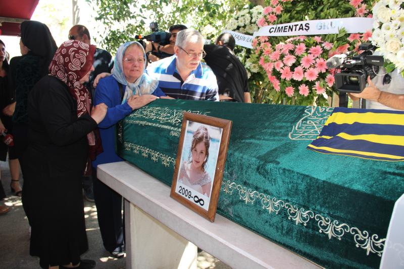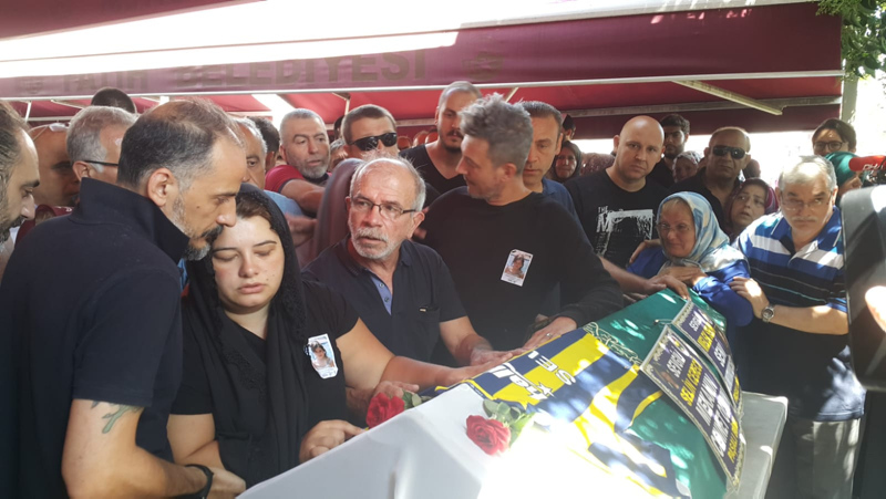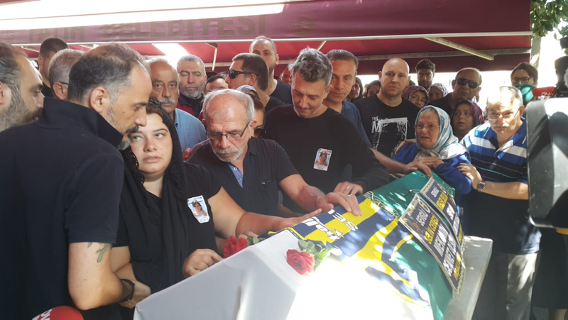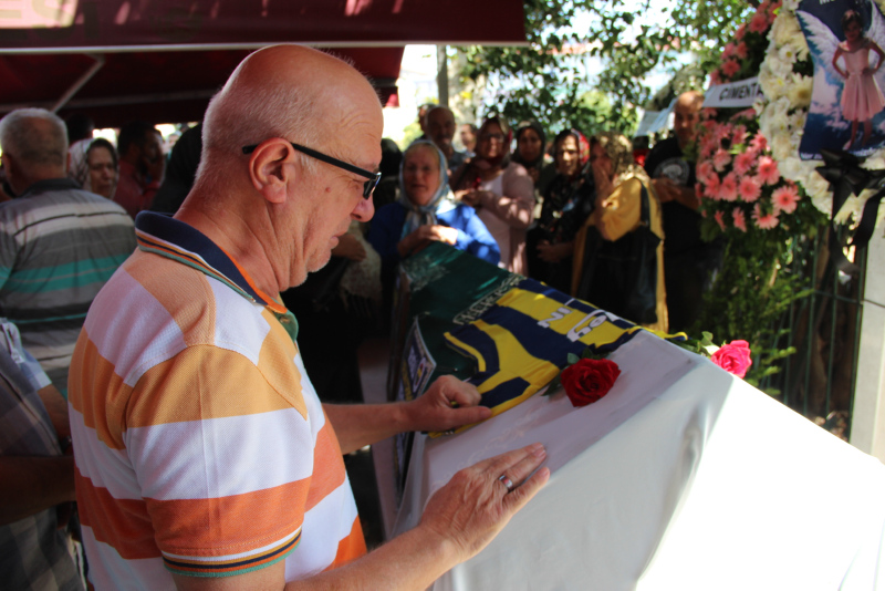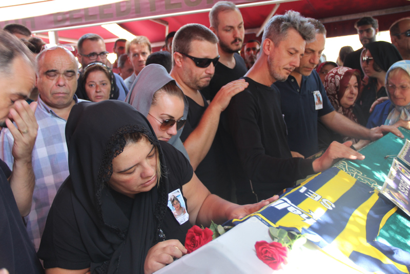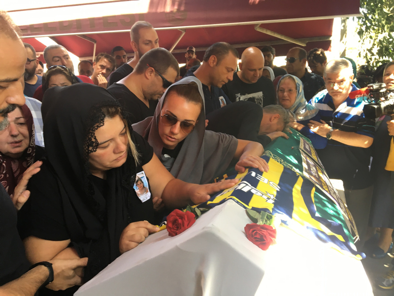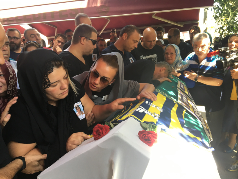 Acılı anne ve baba, kızlarının Fenerbahçe forması örtülen tabutuna sarılarak gözyaşı döktü. Anne Sinem Cebeci, yakınlarına sarılarak ayakta durabildi.