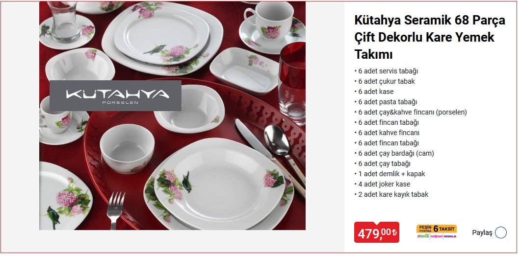 • 6 adet servis tabağı