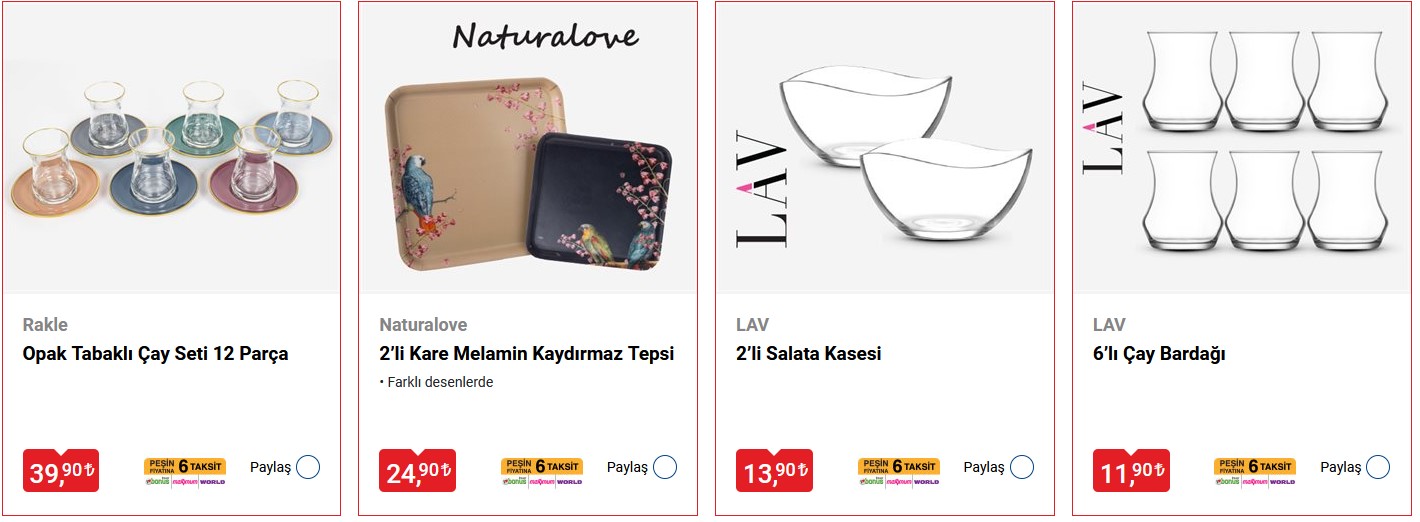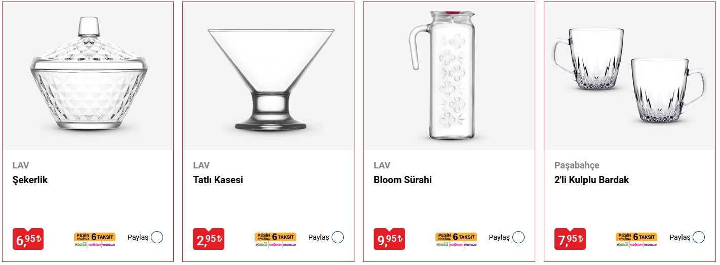 • 6 adet çay bardağı (cam)