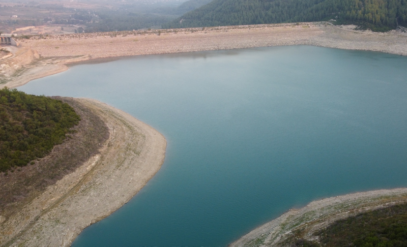 2021 yılı Temmuz ayına kadar kış aylarında aldığı yağışla birlikte doluluk oranın tekrardan yüzde 30 seviyelerine çıktığı Mehmetli Barajı'nda drone ile görüntülenen gövde kısmı ve alan bölgesinde çekilen sular kuraklığın boyutunu gözler önüne serdi.