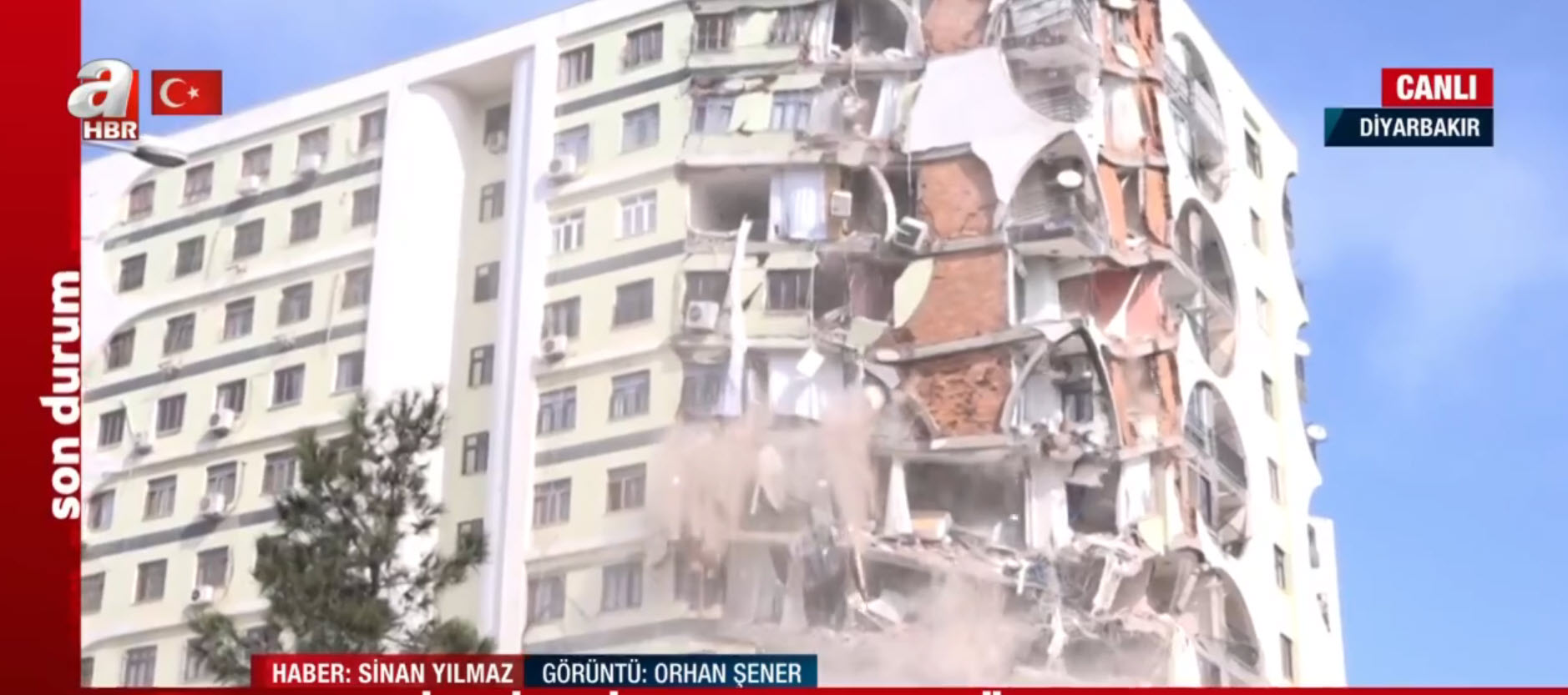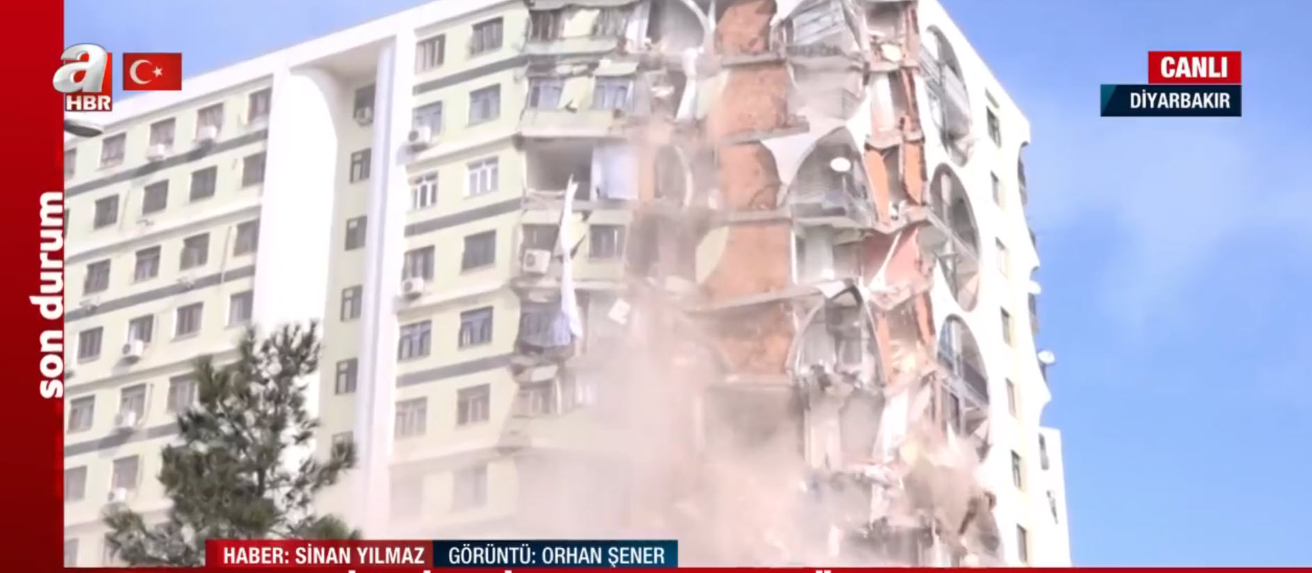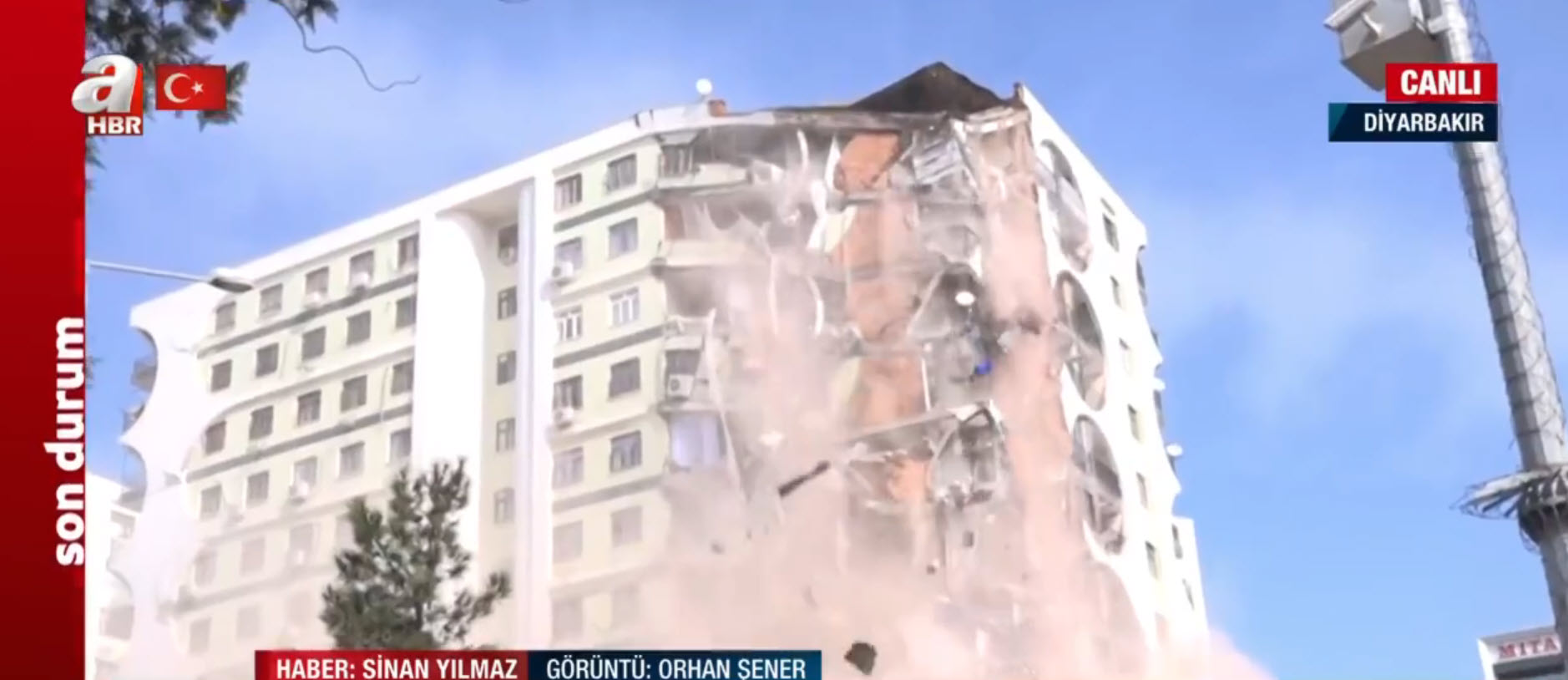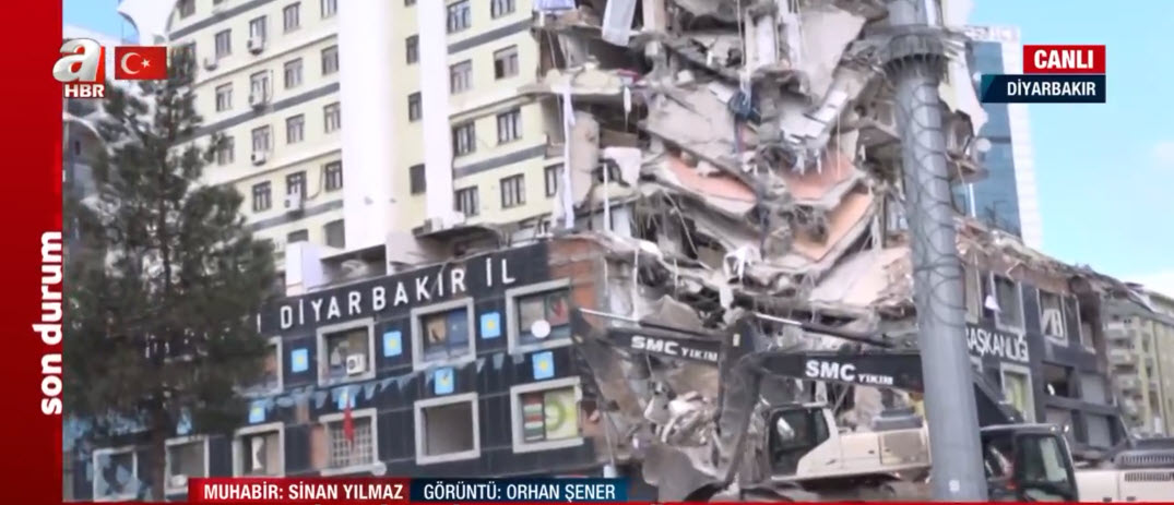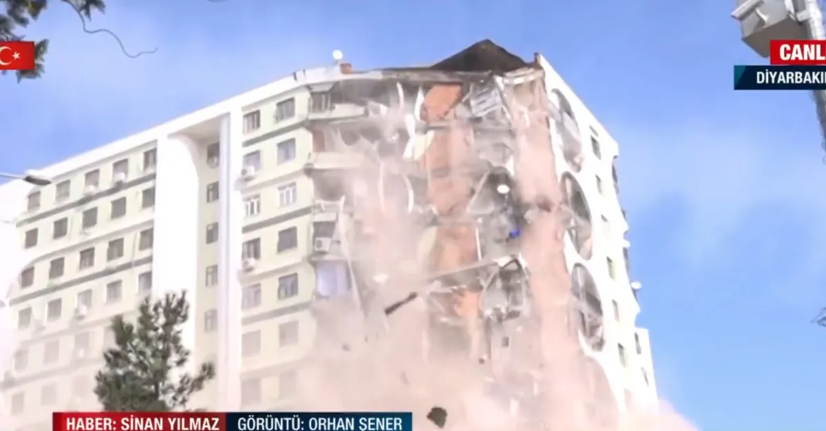 A Haber canlı yayında ekranlara taşıdı! Depremde hasar gören bina böyle yıkılıyor