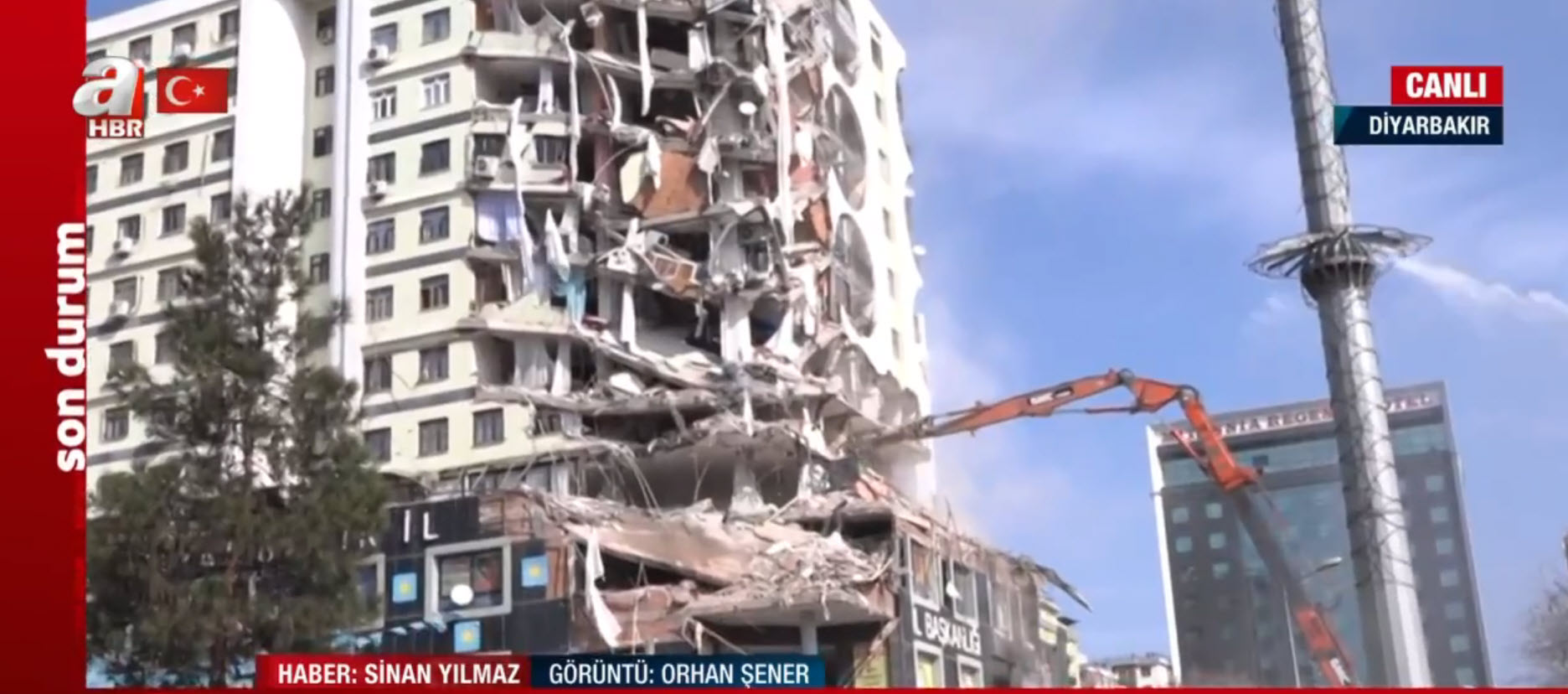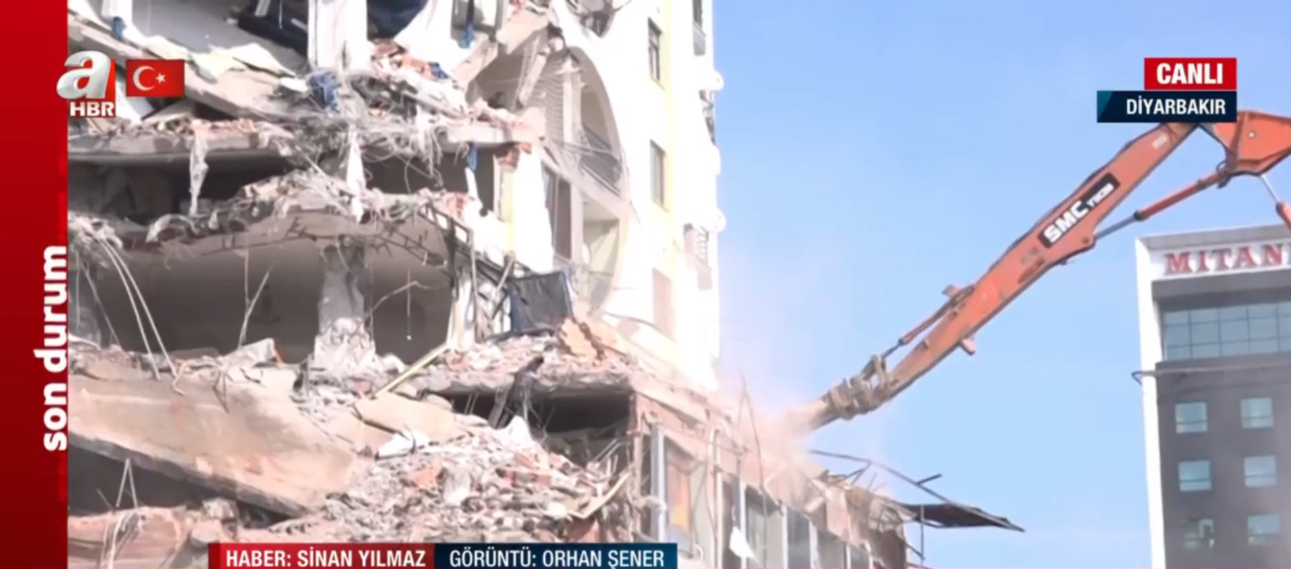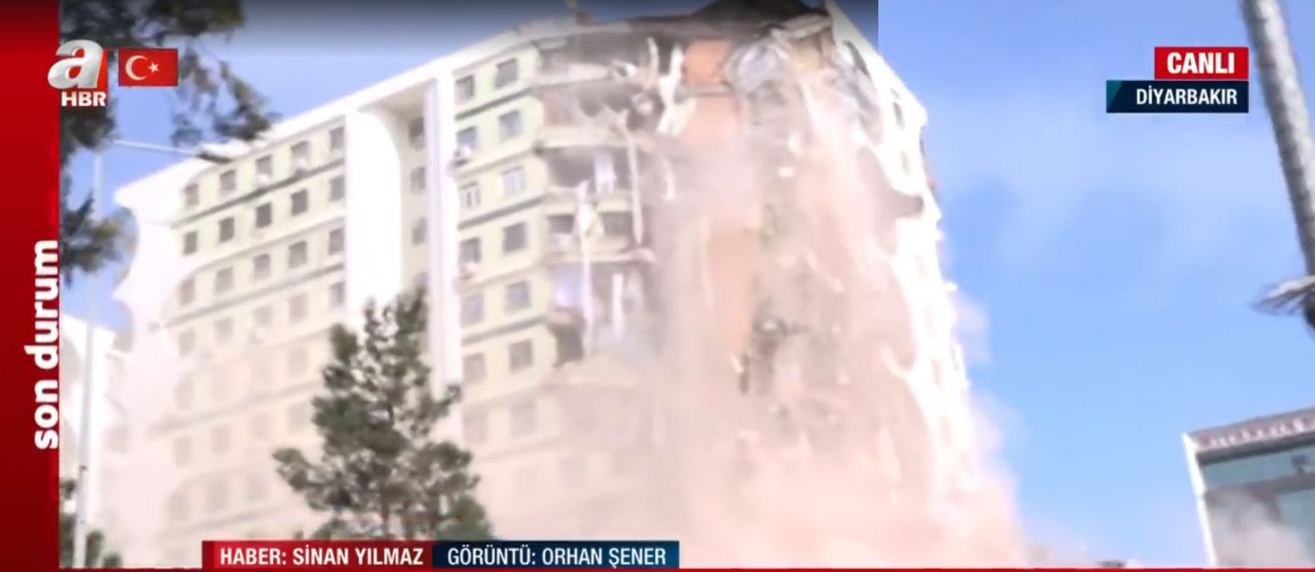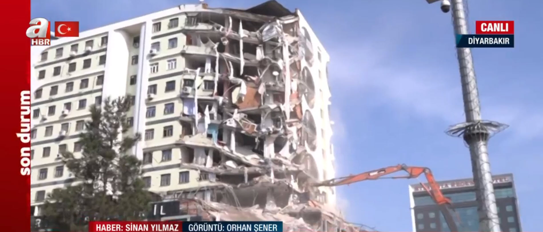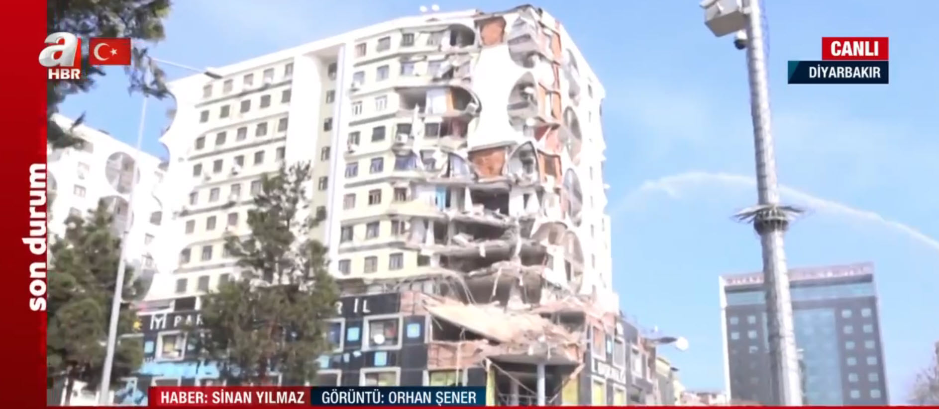 A Haber canlı yayında ekranlara taşıdı! Depremde hasar gören bina böyle yıkılıyor
